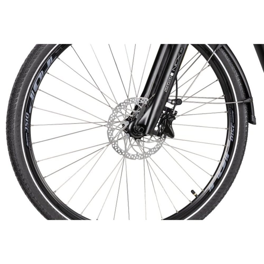 Um Energie zu sparen und angepasst zu pedalieren, ist eine wertige Cues Kettenschaltung mit 10 wählbaren Gangstufen verbaut. Ebenso wie diese, stammt die Deore Scheibenbremsanlage auch vom Marktführer Shimano. Bei der kraftvollen Motorunterstützung und bei einem Einsatz in hügeligeren Gegenden, ist diese standfeste Bremse eine exzellente Wahl.
