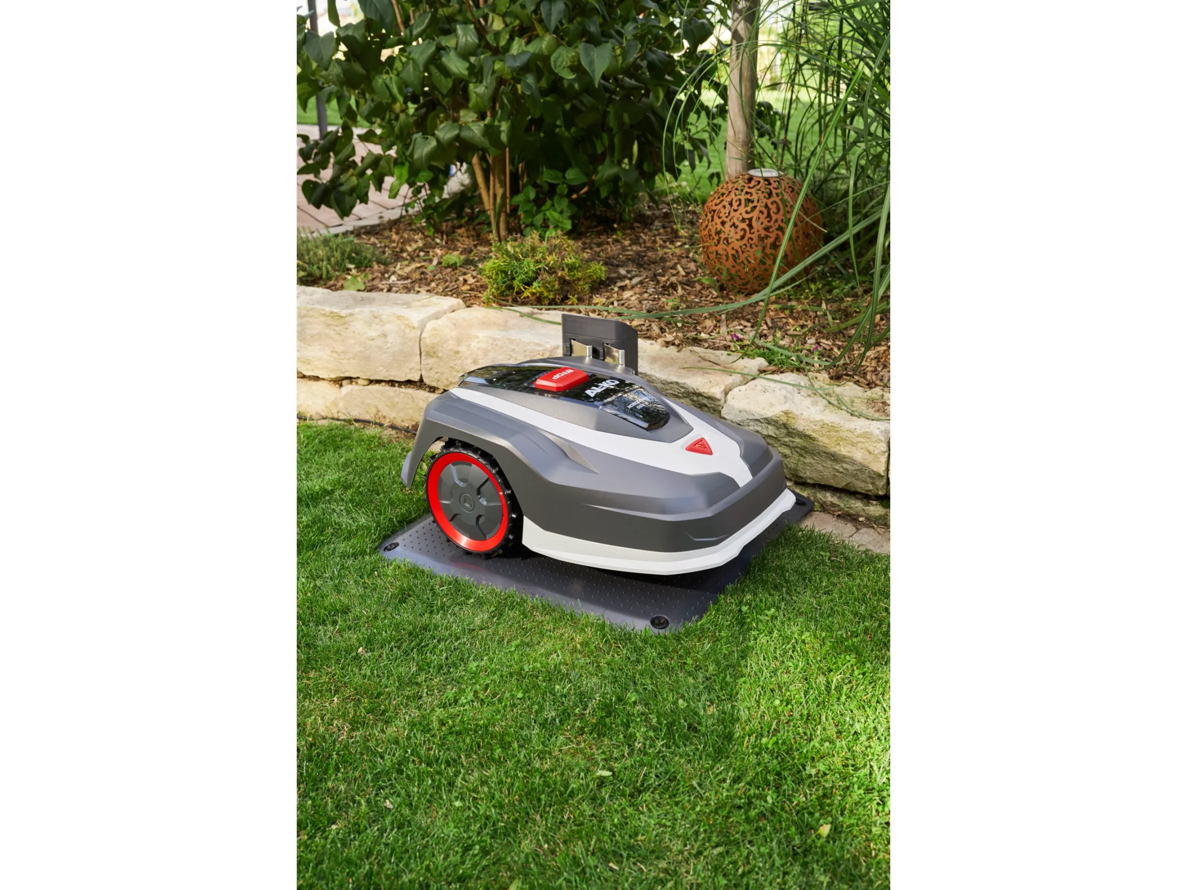 Das Design ist funktional und zugleich modern gehalten. Klare Linien, kompakte Abmessungen und eine ausgewogene Gewichtsverteilung ermöglichen eine sichere Fahrt auch auf unebenem Gelände. Durch die niedrige Bauhöhe kann der Mähroboter problemlos unter Gartenmöbeln oder Sträuchern arbeiten.