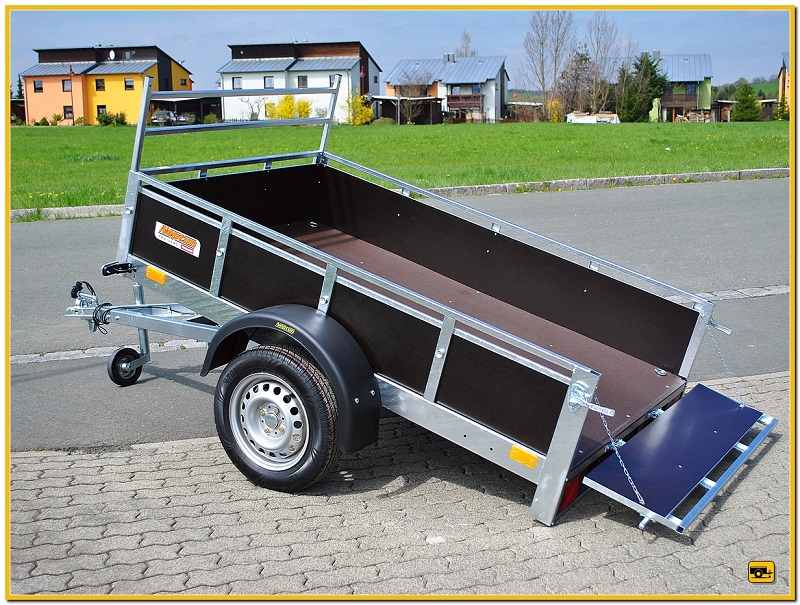 Kippbarer Multiplexanhänger mit sehr vielseitiger Einsatzmöglichkeit dank der vollständigen TOP-Ausstattung.