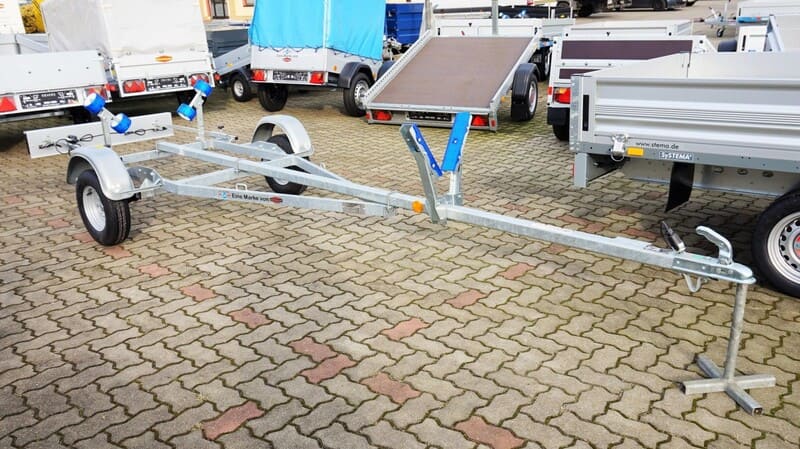 Mehrere Befestigungspunkte ermöglichen eine sichere Fixierung des Bootes während des Transports. Gurte und Haltevorrichtungen sorgen dafür, dass das Boot selbst bei abrupten Bremsmanövern oder Ausweichbewegungen stabil auf dem Anhänger bleibt.