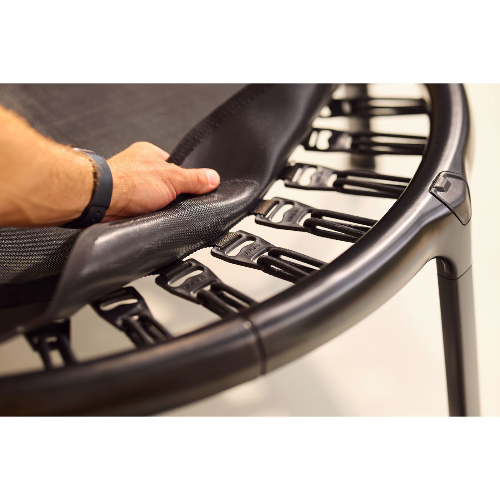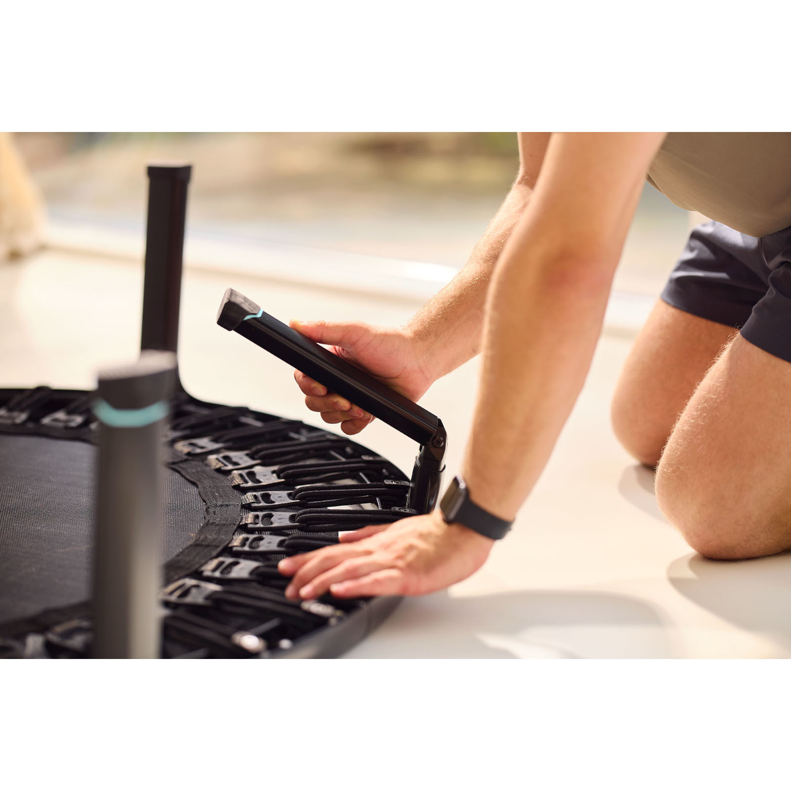 Durch die verstellbaren elastischen Seile können Sie Ihre persönliche Trainingsintensität anpassen, sodass stets eine optimale Federung gewährleistet ist. Die Sprungmatte wurde nach höchsten Standards gefertigt und zeichnet sich durch ihre besondere Sicherheit und Robustheit aus. Sie ist mit einer schützenden Überlappung versehen und verfügt über mehrere Nähte, die eine verlängerte Haltbarkeit gewährleisten.