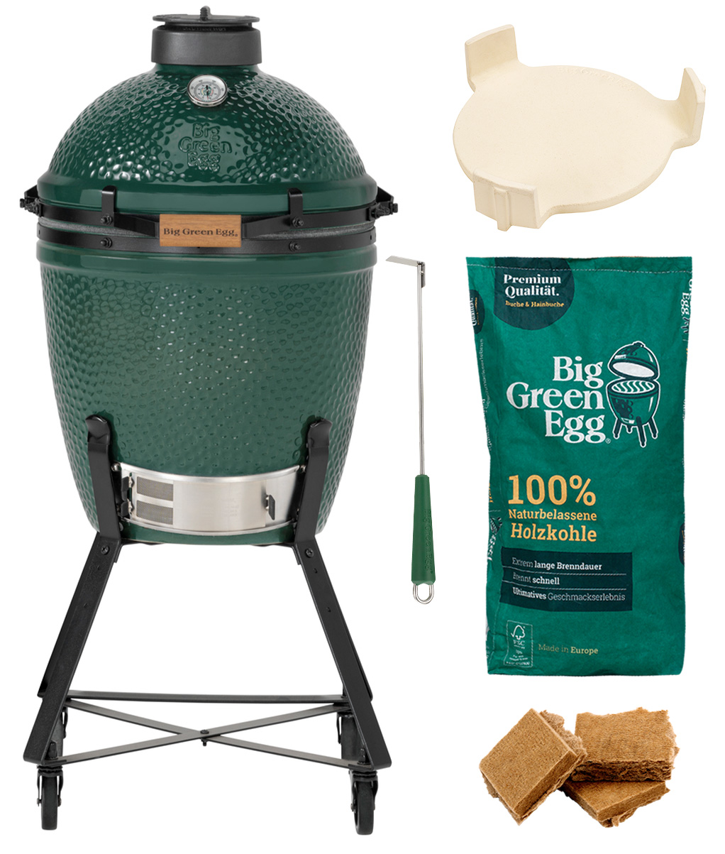 Zuletzt erhalten sie direkt das passende Befeuerungsmaterial zusammen mit ihrem neuen Big Green Egg: Holzkohle, natürlicher Grillanzünder und ein unverzichtbarer Ascheschieber zum einfachen Reinigen des Keramikgrills.