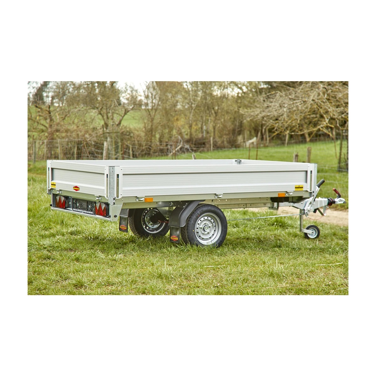 Zur weiteren Ausstattung gehören eine moderne Lichtanlage mit Rückfahrscheinwerfer und ein 13-poliger Stecker, der eine kompatible Verbindung zu den meisten Fahrzeugen sicherstellt. Schmutzfänger an den Kotflügeln schützen vor Straßenschmutz und Nässe.