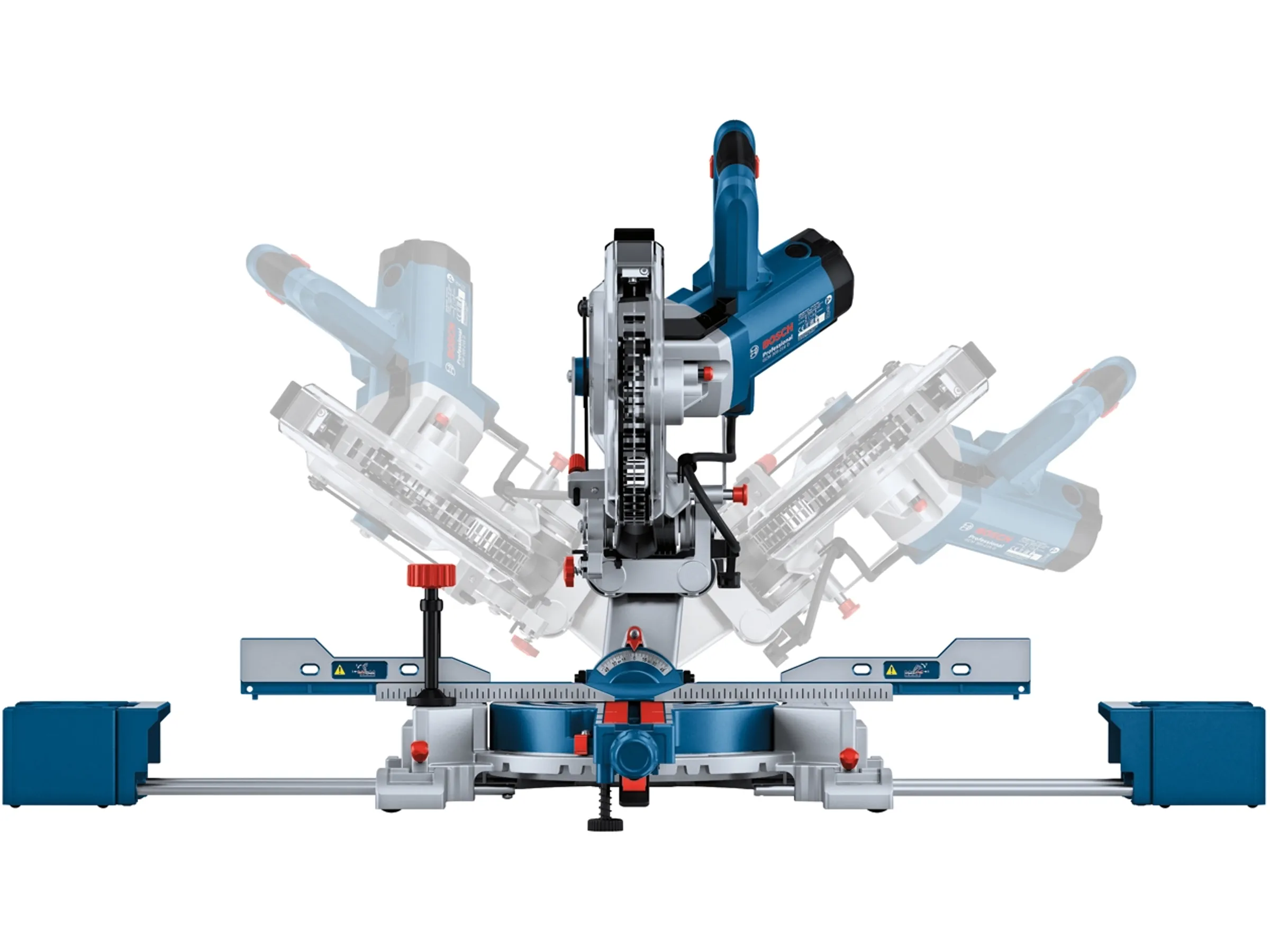 Die GCM 305-216 D von Bosch Professional liefert dank ihres kraftvollen Motors eine starke Schnittleistung für die anspruchsvollsten Schnitte. Die mobile Kapp- und Gehrungssäge ist ein zuverlässiges, leistungsstarkes Gerät, mit dem sich sogar lange Materialstücke dank abnehmbarer Werkstückauflagen und langer Tischverlängerungen kontrolliert schneiden lassen. Durch ihre beidseitige Neigungsfunktion mit ergonomischem Drehschalter zur Neigungsverriegelung bietet sie sogar bei anspruchsvollen Schnitten einen höheren Komfort und mehr Flexibilität.