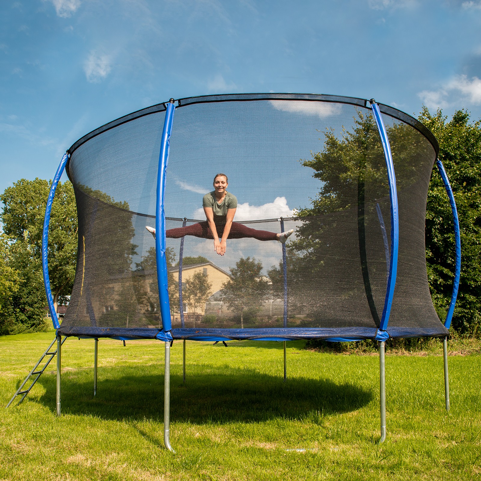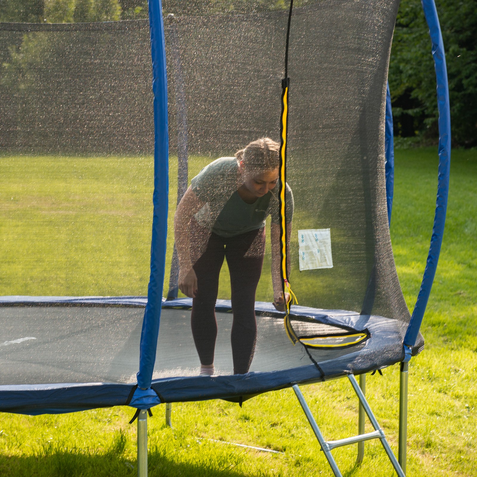 Wenn die Kleinen auf dem Trampolin toben, will man doch auch einmal abschalten und nicht die ganze Zeit mit einem oder zwei wachsamen Augen dabei sein müssen. Genau aus diesem Grund ist das cardiojump Trampolin Advanced mit allerhand Sicherheitsfeatures ausgestattet – so können die Kleinen oder auch Sie selbst unbeschwert toben, turnen oder trainieren. Das mitgelieferte Sicherheitsnetz ist engmaschig und die Höhe so gewählt, dass die Größeren beim Springen auch mal über den Rand gucken können. Die dicke Sicherheitsabdeckung über den Federn und das lückenlos angebrachte Netz sorgen rundum für Sicherheit.