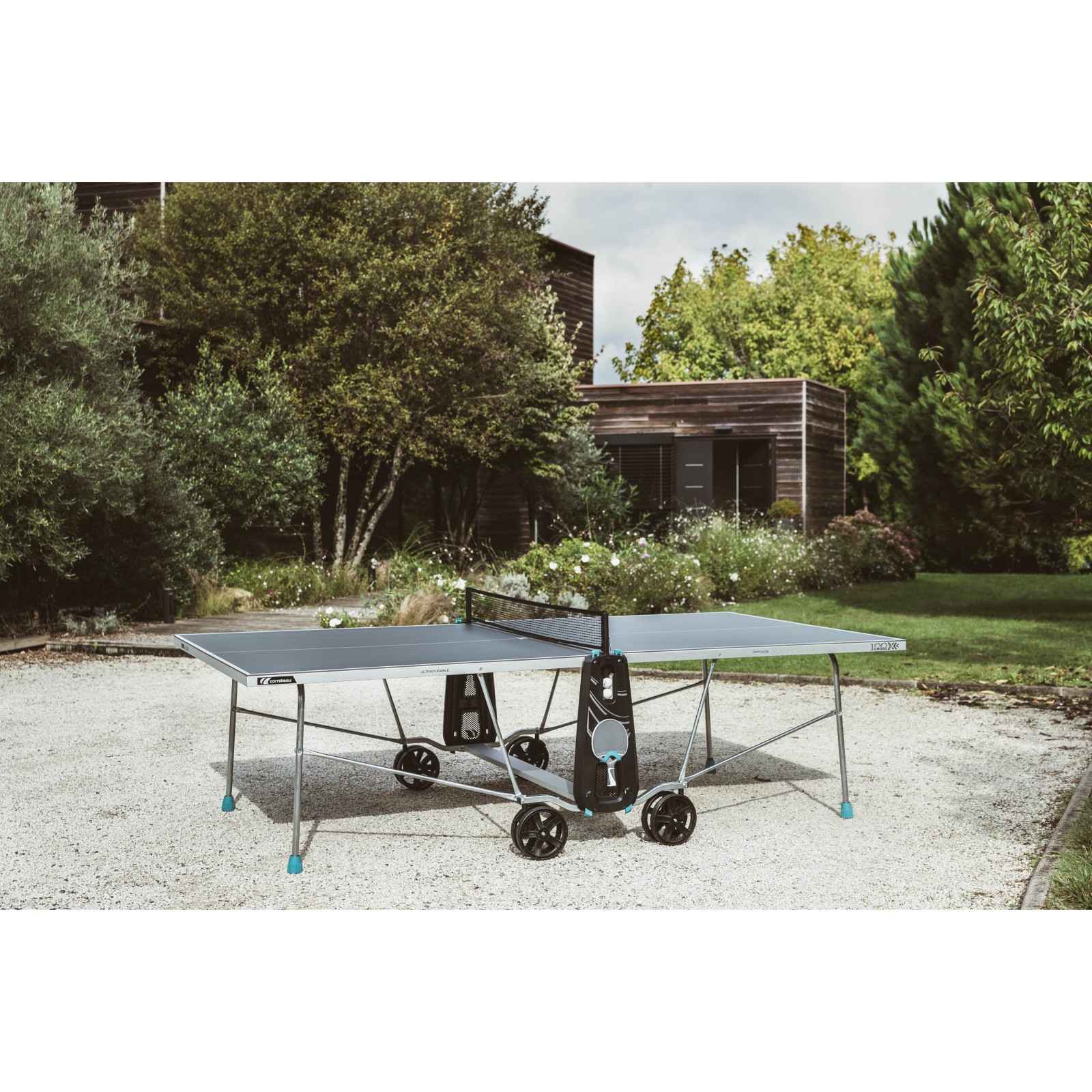 Die ausgezeichnete Qualität, hohe Langlebigkeit und Sicherheit stehen bei Cornilleau stets im Vordergrund. Die Cornilleau Outdoor Tischtennisplatte 100X ist mit einer stabilen Rahmenkonstruktion mit 40-mm-Rohren und einer 4 mm starken Melaminharz-Oberfläche versehen. Somit ist die Cornilleau Outdoor wetterfest und gut gegen Korrosion und Verformung geschützt.