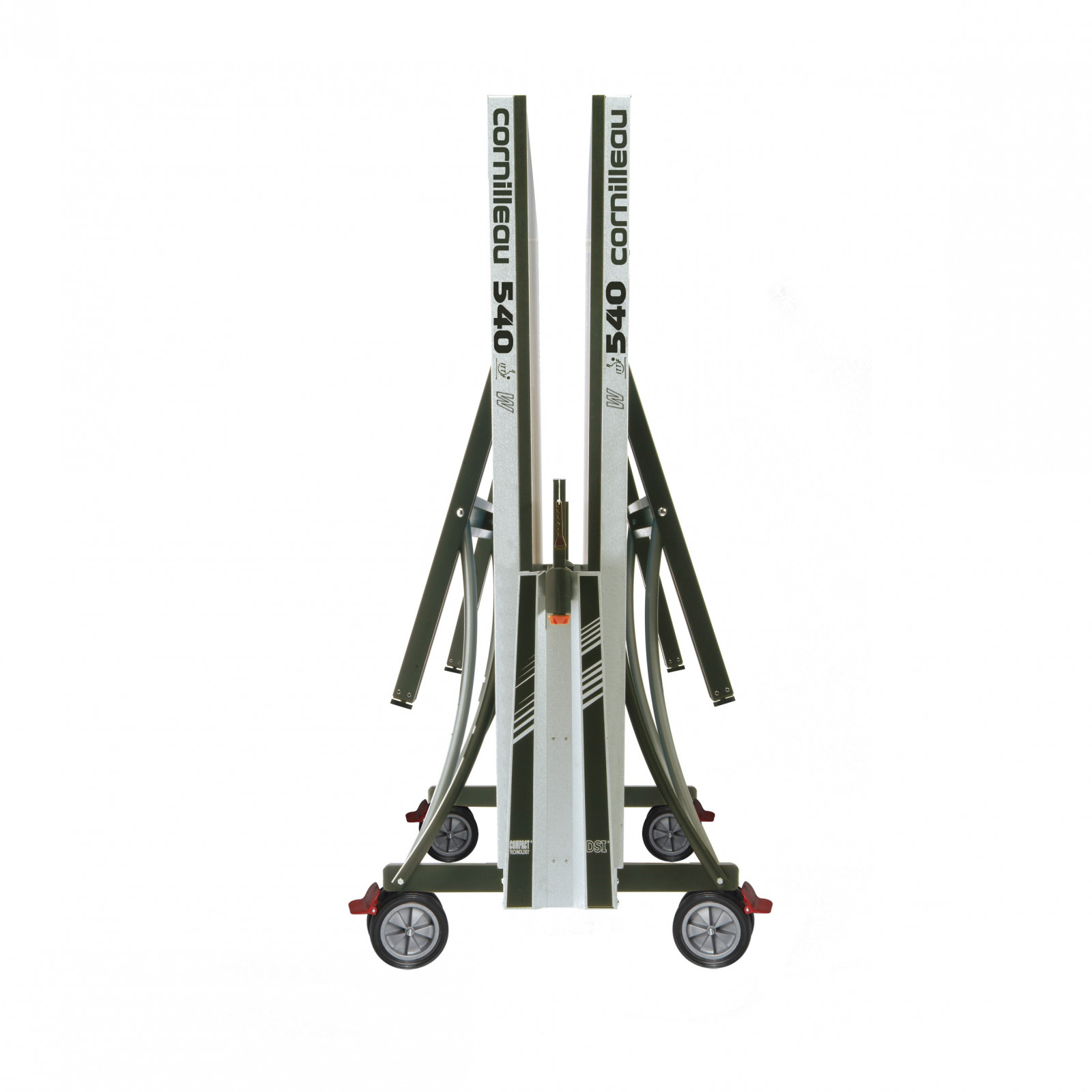 Die Cornilleau Tischtennisplatte ist mit dem innovativen DSI-Verrieglungsmechanismus und der COMPACT TECHNOLOGY ausgestattet. Mit nur einem Griff lassen sich die Plattenhälften hochklappen und die gesamte Platte kann auf dem integrierten Rollwagen ganz bequem zur Seite geräumt werden. Durch das Verstellen der Füße können Sie einen sicheren Stand auch auf unebenen Untergrund garantieren.