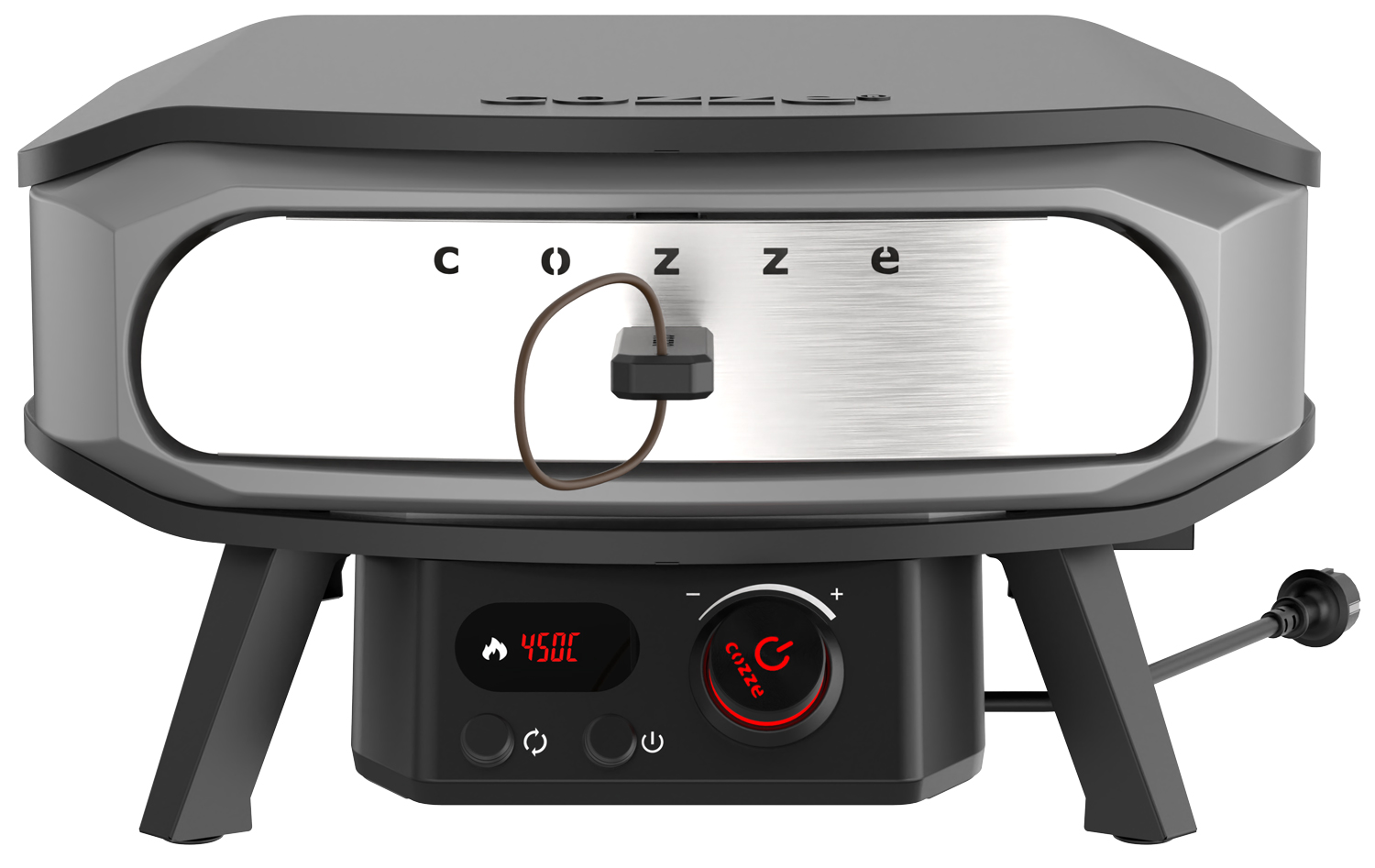 - leistungsstarkes Heizelement mit 2.200 Watt um den Pizzastein – für Temperaturen bis zu 450 °C