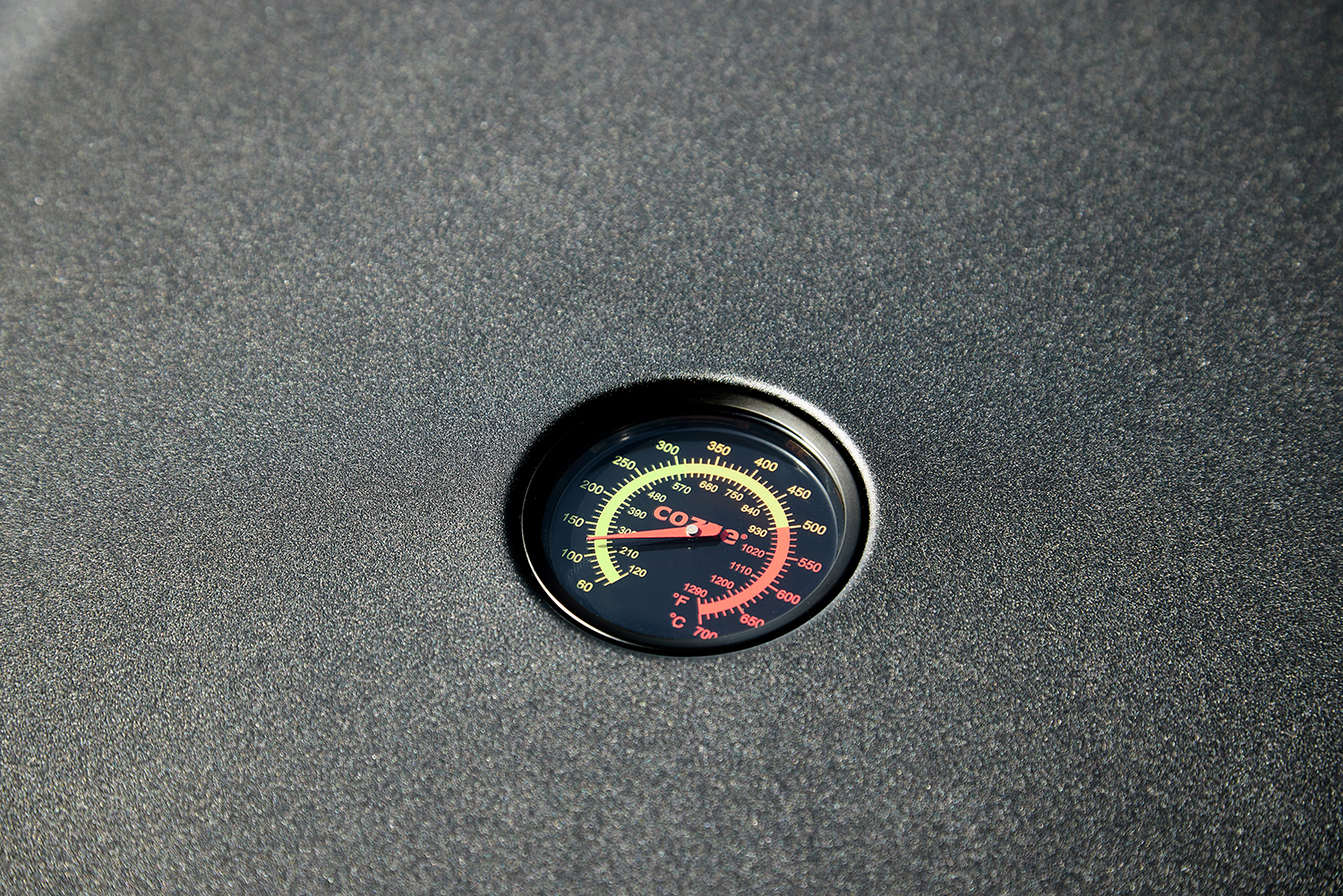 Das integrierte Thermometer auf der Oberseite ermöglicht eine Temperaturüberwachung mit nur einem Blick und die praktische weiß-rote LED-Beleuchtung am Drehknopf zeigt sicher und benutzerfreundlich an, ob der Pizzaofen gerade in Betrieb ist.