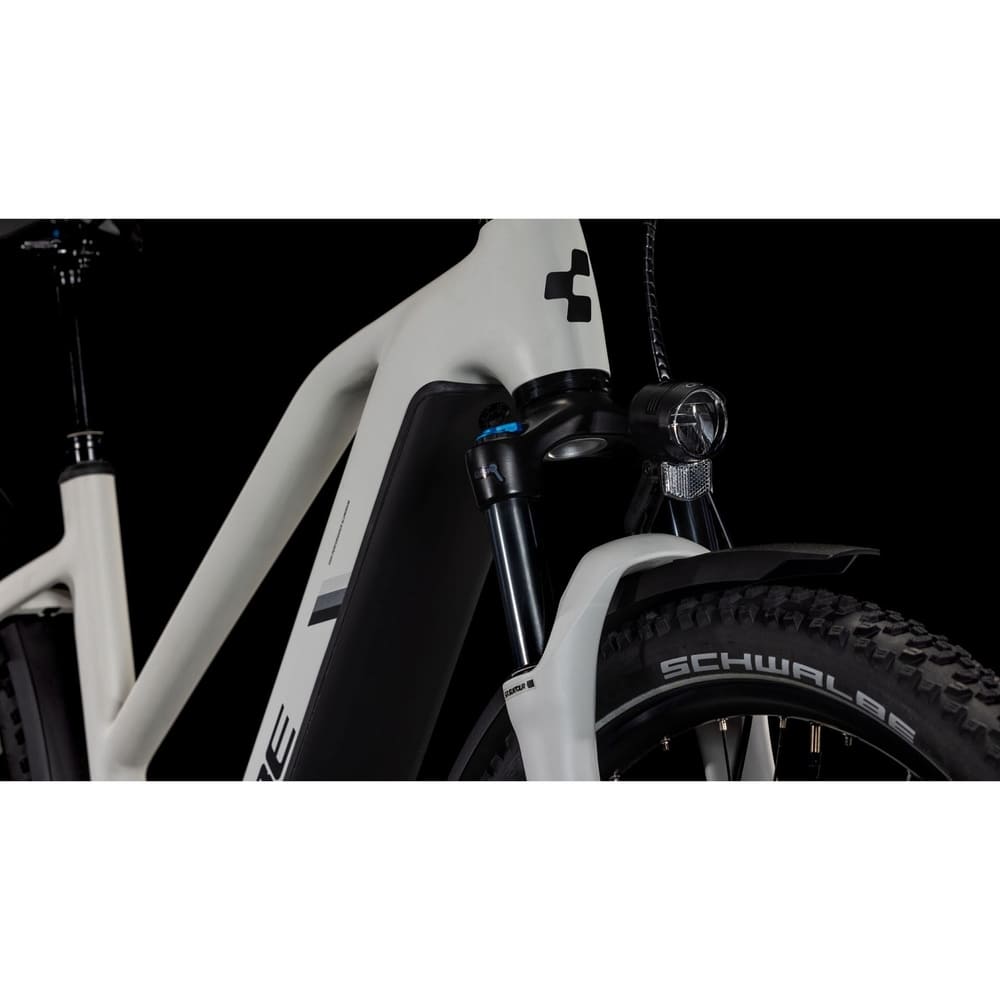 Kompromisse sind nicht so das Ding bei CUBE, deshalb haben sie das Nuride Hybrid EXC Allroad auch mit der super zuverlässigen 12-fach Shimano XT Schaltung und einem Bosch CX Antrieb samt PowerTube Akku bestückt. Außerdem mit breiten, griffigen Reifen von Schwalbe und einer geschmeidig dämpfenden Suntour Luftfedergabel mit 100 mm Federweg, die vor allem auf holprigen Wegen jede Menge Fahrkomfort mitbringen.