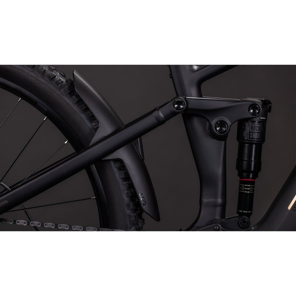 Auf der Suche nach einem starken – und top zuverlässigen – Zweiradpartner für sämtliche Geländeabenteuer? E voilà, hier kommt das CUBE Stereo Hybrid ONE44 EX 800. Mit seinem SRAM T90 Transmission 12-fach Antrieb und den bissigen hydraulischen Shimano Scheibenbremsen bietet dieses MTB-Fully top organisierten Vortrieb und 1a-Geschwindigkeitskontrolle in einem. Einfach auf fast jedes Körpergewicht einstellbar: die RockShox Psylo Silver Luftfedergabel und der passende Deluxe Select Dämpfer mit bis zu 140 mm Federweg, die sämtliche Unebenheiten auf ruppigen Trails glattbügeln wie nichts.