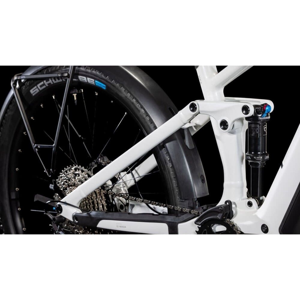Ein Bike, das alles kann und alles mitmacht, ist das CUBE Stereo Hybrid ONE44 EXC 800 Allroad, das standardmäßig mit Schutzblechen, Gepäckträger und Lichtanlage daherkommt. So macht es auf dem täglichen Weg ins Office einen ebenso guten Job wie als klassischer Tourer und potenter Bikepacker auf längeren Reisen. Doch da ist noch mehr: Seine Allround-Offroad-Qualitäten verdankt das Fully den 140 mm Federweg der Fox 36 AWL Float Federgabel und des Float Rhythm RC Dämpfers.
