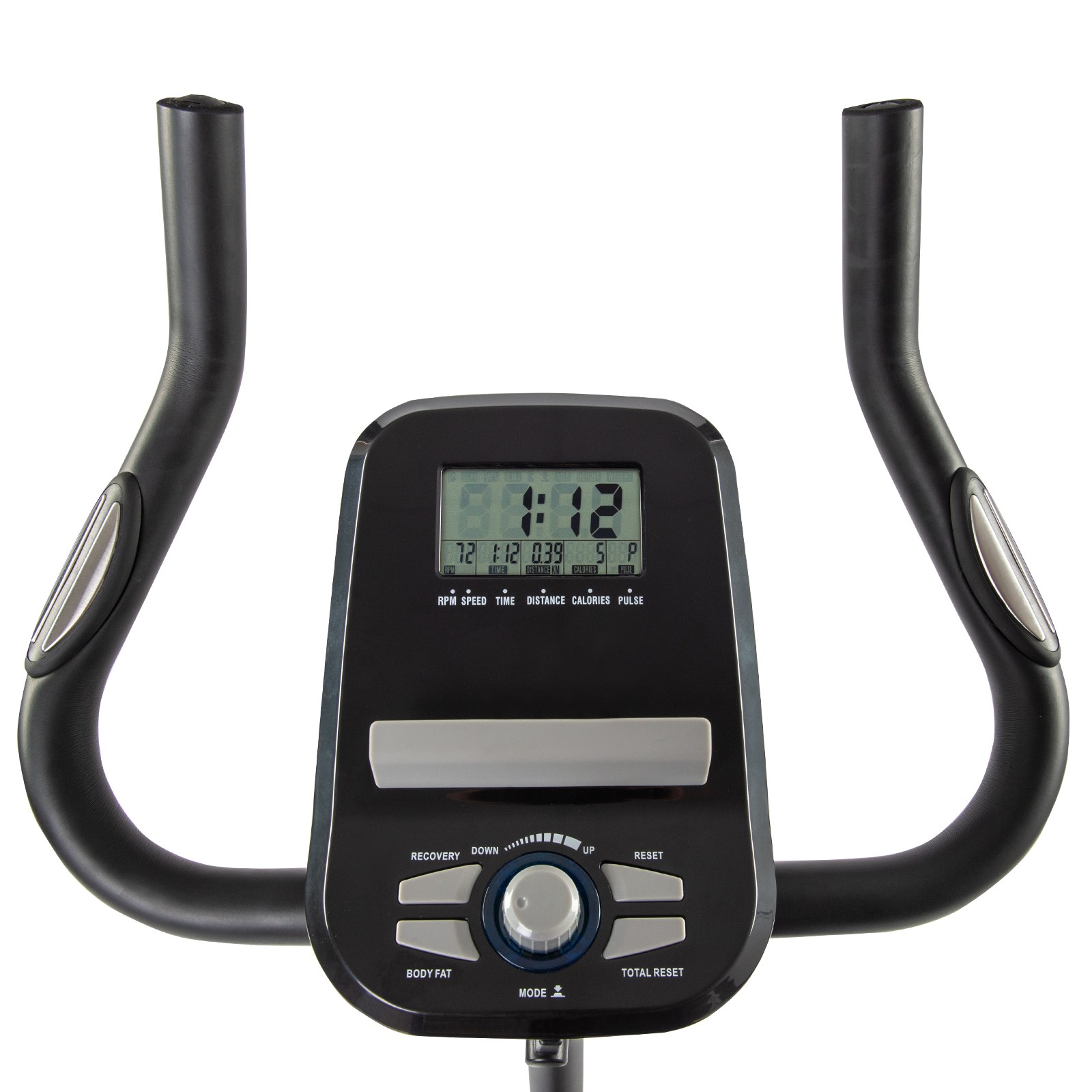 - Anzeige: Zeit, Strecke, Geschwindigkeit, RPM, Kalorien, Puls