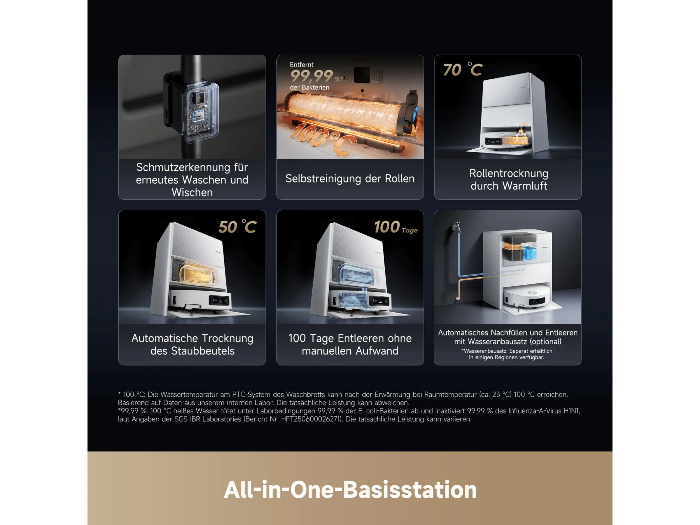 Die Station übernimmt zudem das Nachfüllen von Wasser und sorgt dafür, dass der Roboter jederzeit einsatzbereit ist. Dies ist besonders für vielbeschäftigte Nutzer ein großer Vorteil.