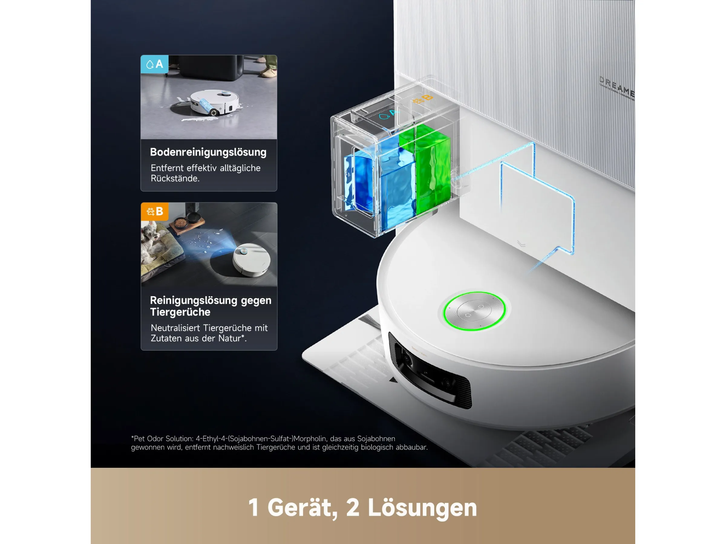 Zwei separate Reinigungsmitteltanks ermöglichen den Einsatz unterschiedlicher Mittel – ideal für die tägliche Bodenpflege oder das Entfernen hartnäckiger Tiergerüche.