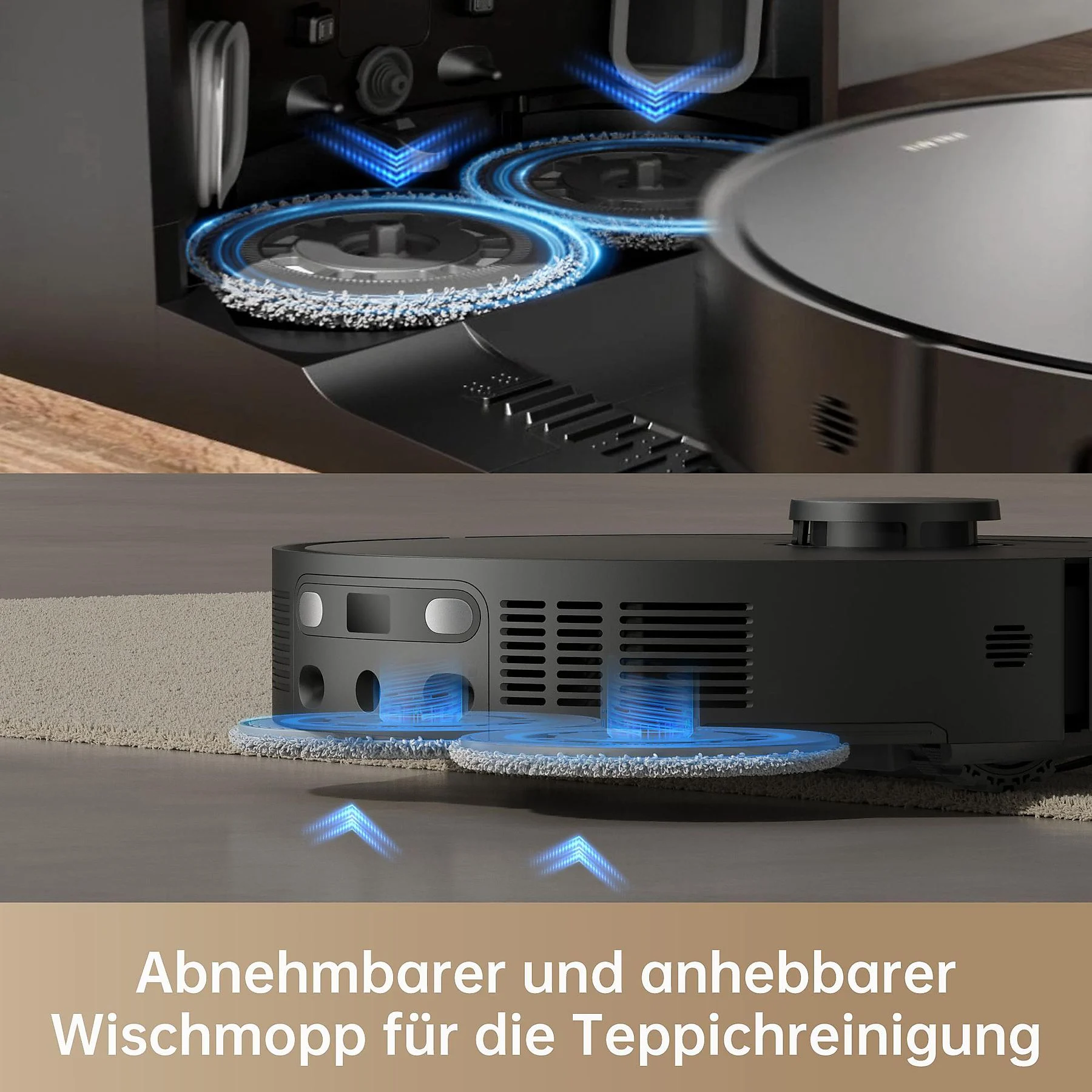 Die Wasserzufuhr wird präzise gesteuert, sodass Böden nicht übermäßig befeuchtet werden. Dadurch eignet sich die Wischfunktion auch für empfindliche Bodenbeläge. Nach dem Wischen werden die Reinigungselemente automatisch gepflegt, um Geruchsbildung und Bakterienwachstum zu reduzieren.