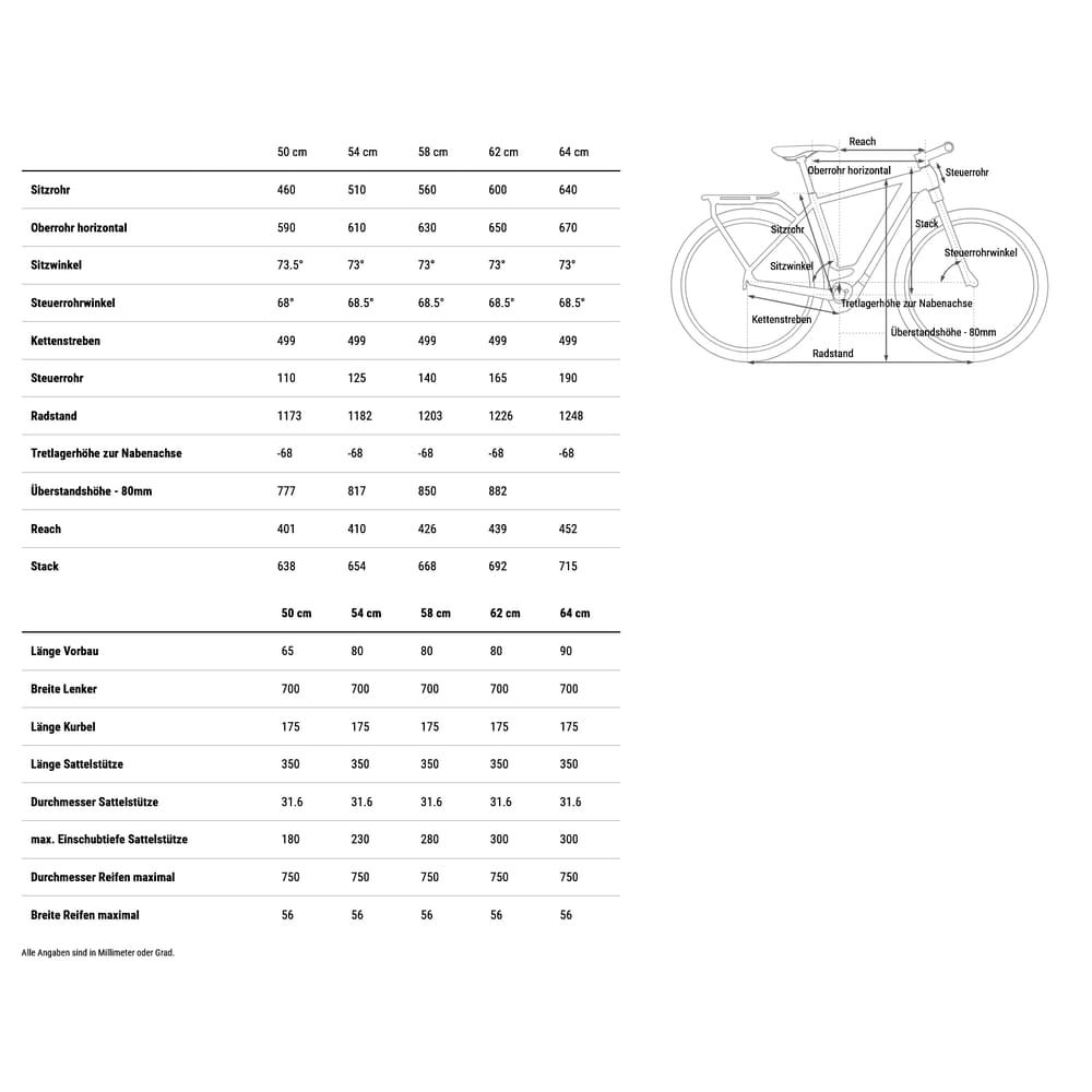 | Größe | 50 cm, 54 cm, 58 cm, 62 cm, 64 cm |