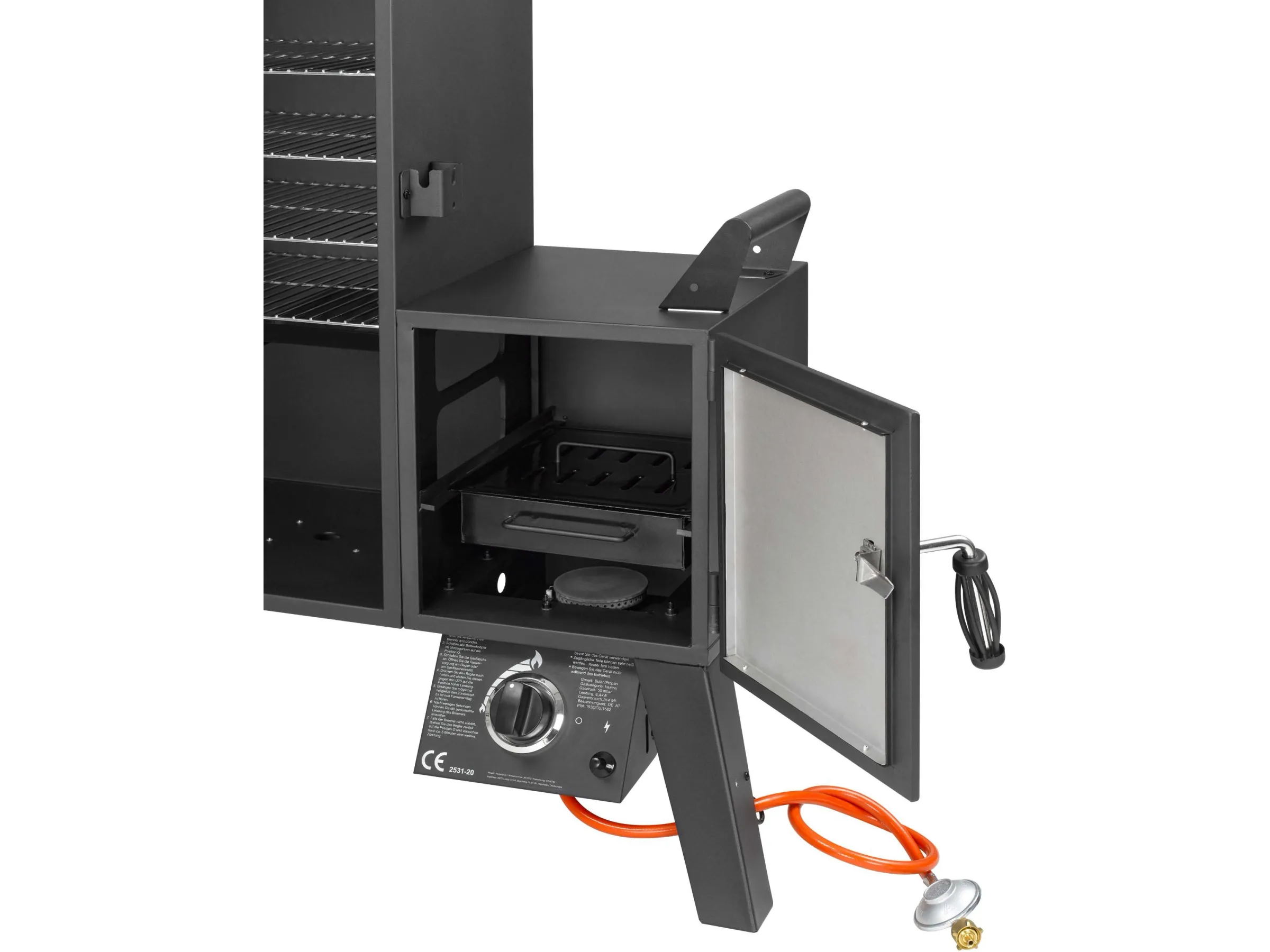 Das Brennersystem liefert eine stabile und präzise Hitzequelle. Mit wenigen Handgriffen lässt sich die Temperatur nach Wunsch regulieren, was den Smoker ideal für sowohl schnelle als auch lange Zubereitungen macht.