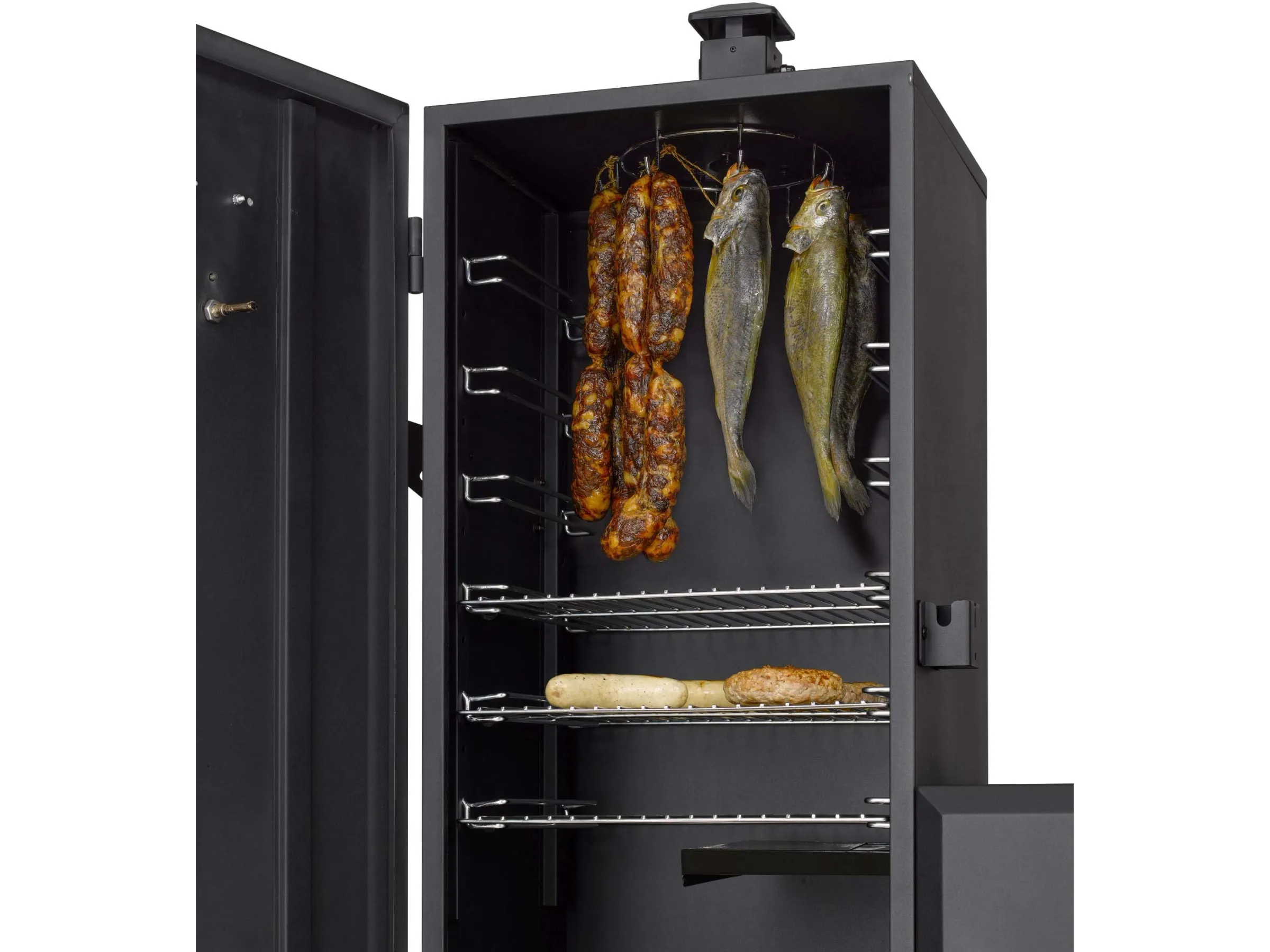 Die ausgewogene Gestaltung sorgt dafür, dass der Smoker sowohl optisch als auch praktisch eine hervorragende Figur macht. Seine matten Oberflächen und klaren Linien verleihen ihm eine zeitlose Ästhetik.