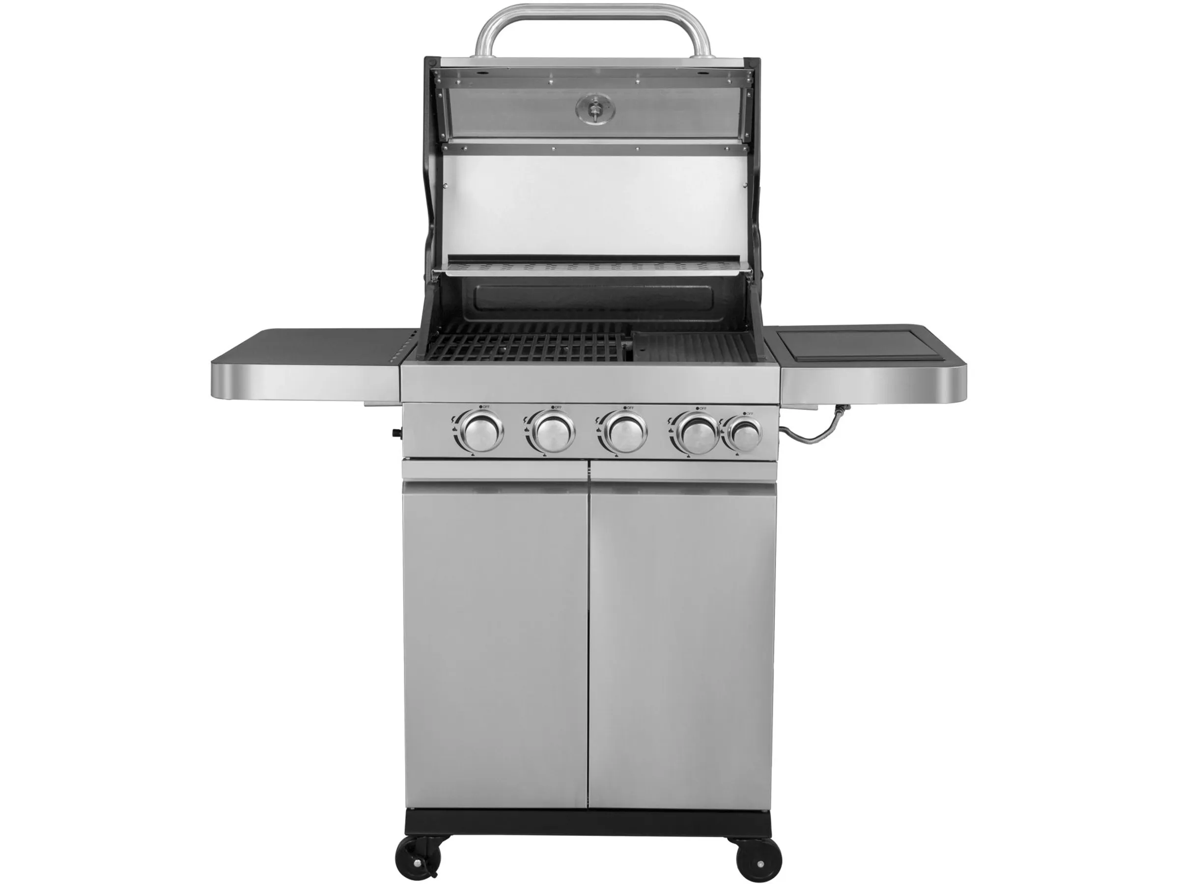 Der großzügige Einsatz von hochwertigem Edelstahl sorgt einerseits für ein edles Erscheinungsbild des Grills und andererseits für eine leichte Reinigung der Oberflächen – so haben Sie länger Spaß an Ihrem Grill.