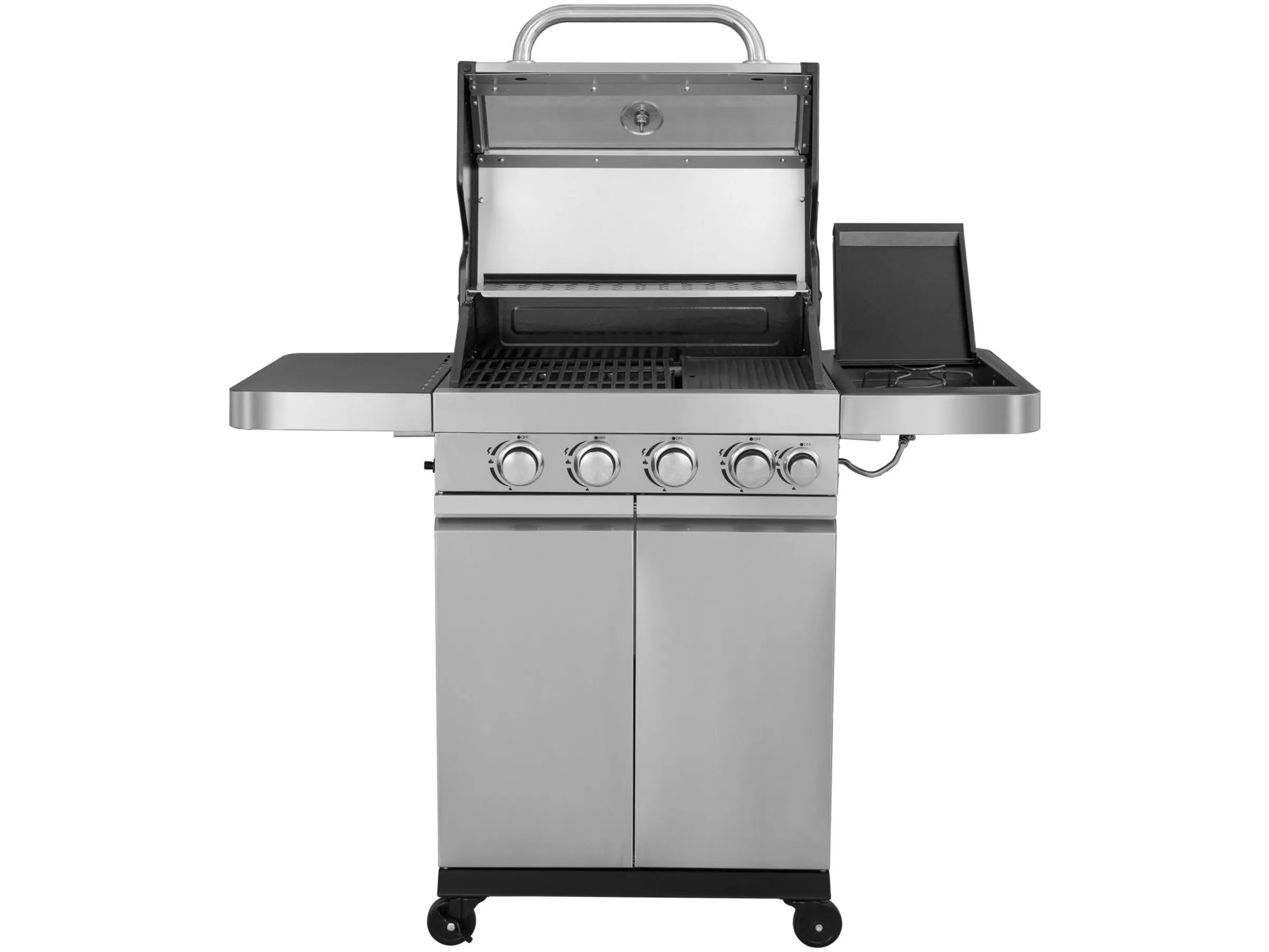 – Leistung: 4 Hauptbrenner je 3,0 kW und 1 Seitenbrenner 2,5 kW (insg. 14,5 kW)