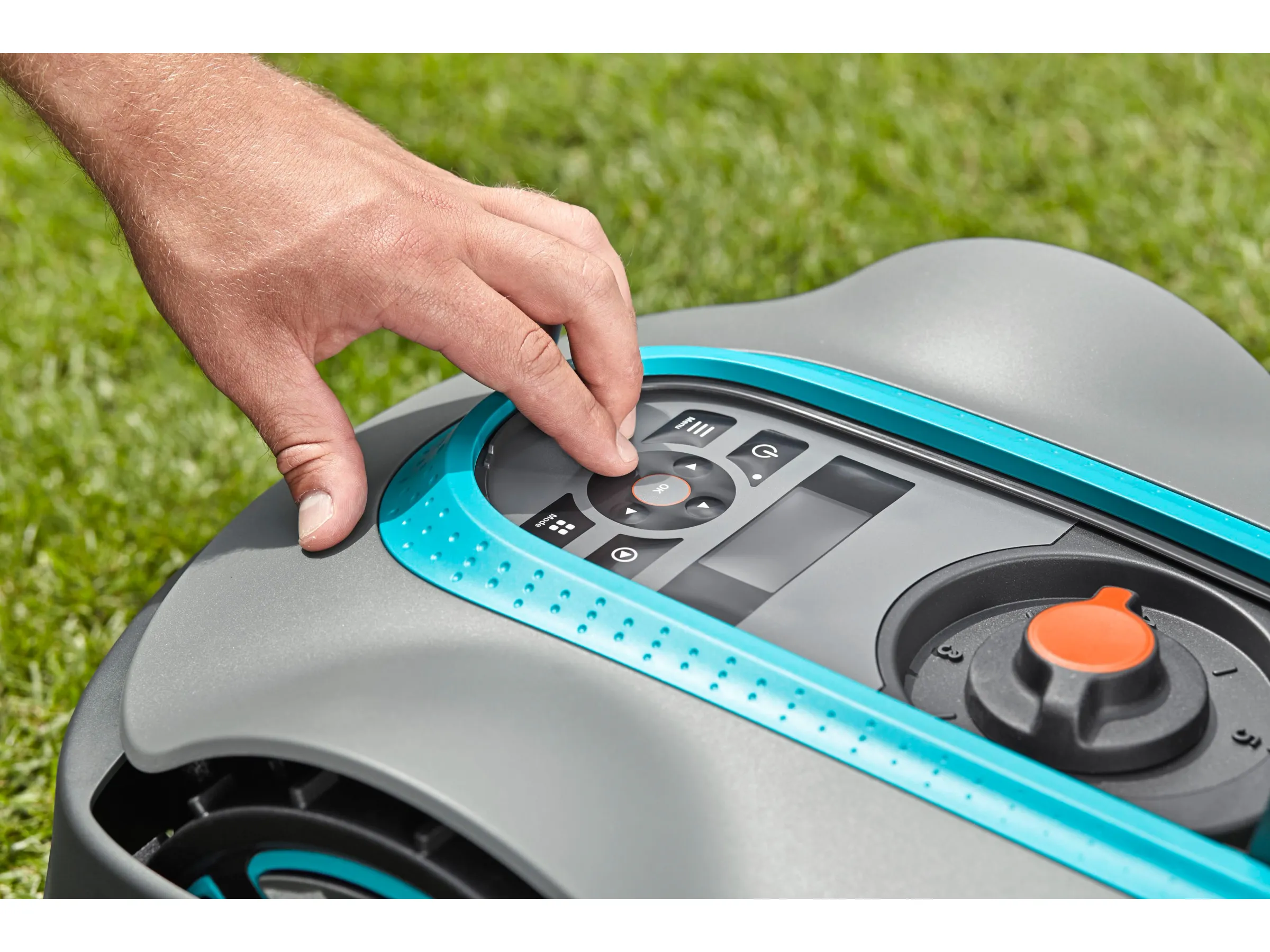 SensorControl: Der Rasen-Mähroboter misst das Graswachstums und entscheidet eigenständig, wie oft innerhalb der vorgegebenen Mähzeiten gemäht wird.