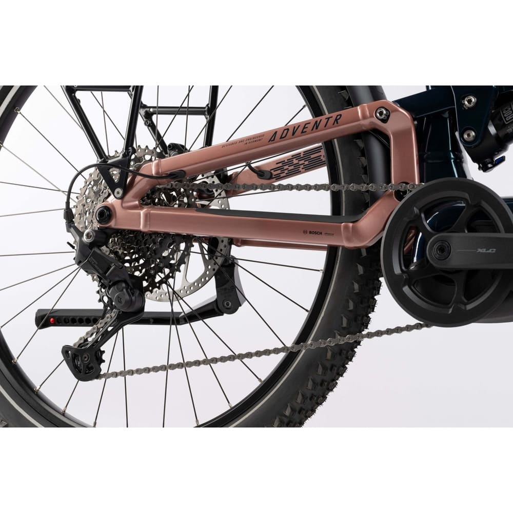 Das neue ADVENTR 8.5 schlägt die Brücke zwischen einem zuverlässigen Trekking eBike und einem komfortablen Fully eMTB. Basierend auf der gleichen Rahmenplattform wie die geländeaffinen ALLTRAIL Modelle, macht dieses Rad selbst den monotonen Arbeitsweg zum bunten Waldabenteuer. Dafür sorgt auch die sportive Ausstattung: Der neueste Bosch Performance Line CX Motor schiebt dich selbst bei stärkstem Gegenwind kraftvoll an. Der 600 Wh Akku liefert bei deinen Daily Rides ausreichend Energie. Und dank seiner Mountainbike-Gene mit 140 mm Federweg vorn sowie 130 mm hinten hält dich dieses SUV eBike auch auf gröberen Schotterstraßen stets sicher in der Spur. Ein starker Heckgepäckträger gehört selbstverständlich ebenfalls zur Ausstattung. Dein Partner für urbane Alltagsabenteuer und spontane Abstecher in die Wildnis.