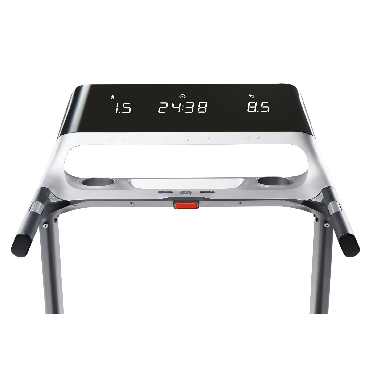 - Schnellwahltasten in den Handläufen für Geschwindigkeits- und Steigungseinstellungen