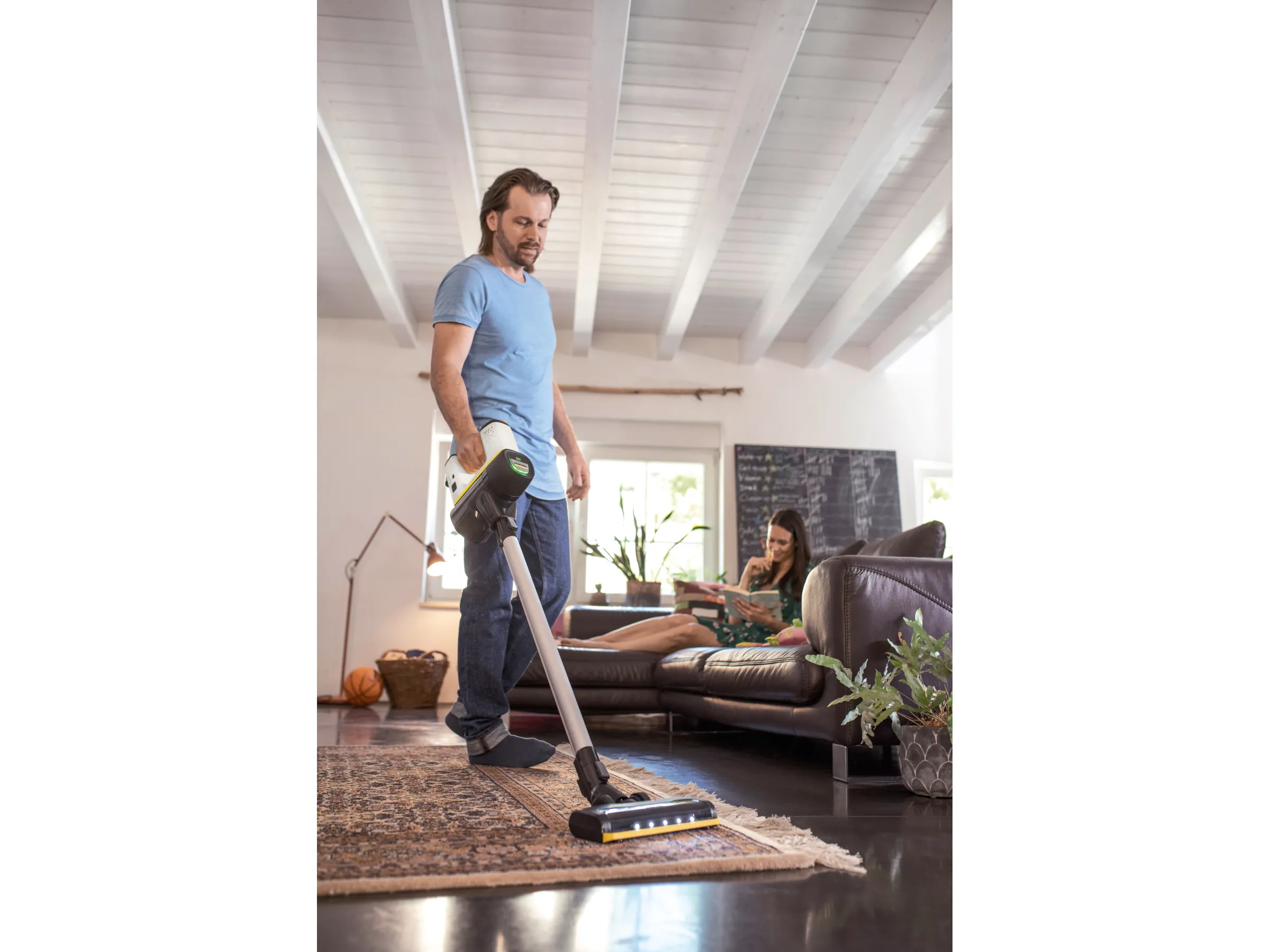 Durch die Wandhalterung mit Ladefunktion kannst du den Staubsauger platzsparend verstauen und laden. Durch sein leichtes Gewicht und sein ergonomisches Design kommt der Bodensauger auch an schwer zugängliche Stellen. Die integrierte LED Beleuchtung an der aktiven Bodendüse macht den Staub sichtbarer.-