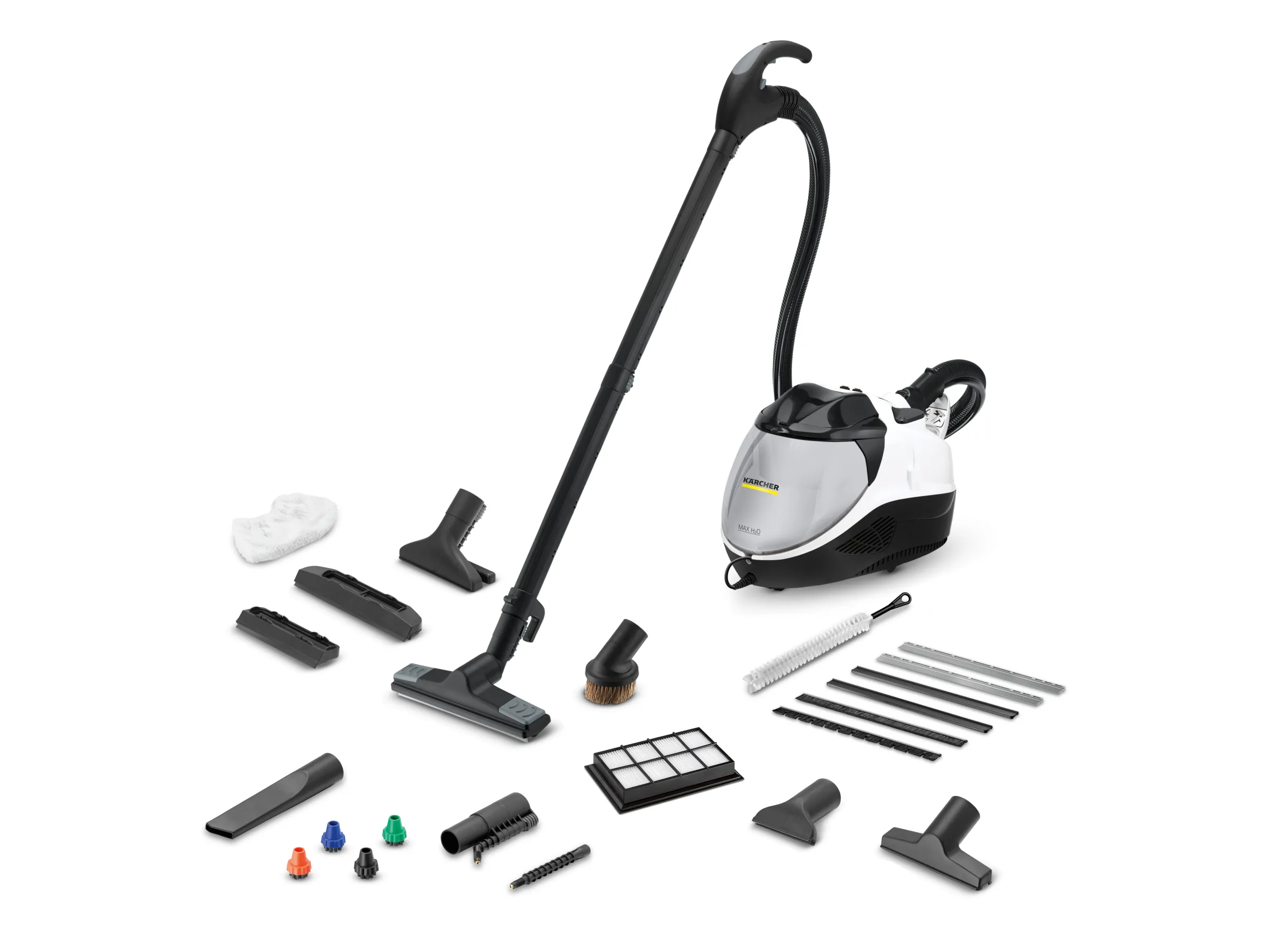– Bodenreinigungsset mit Dampfsaugfunktion: 3 verschiedene Einsätze für Hart- und Teppichboden und 2 Dampfsaugrohre je 50 cm