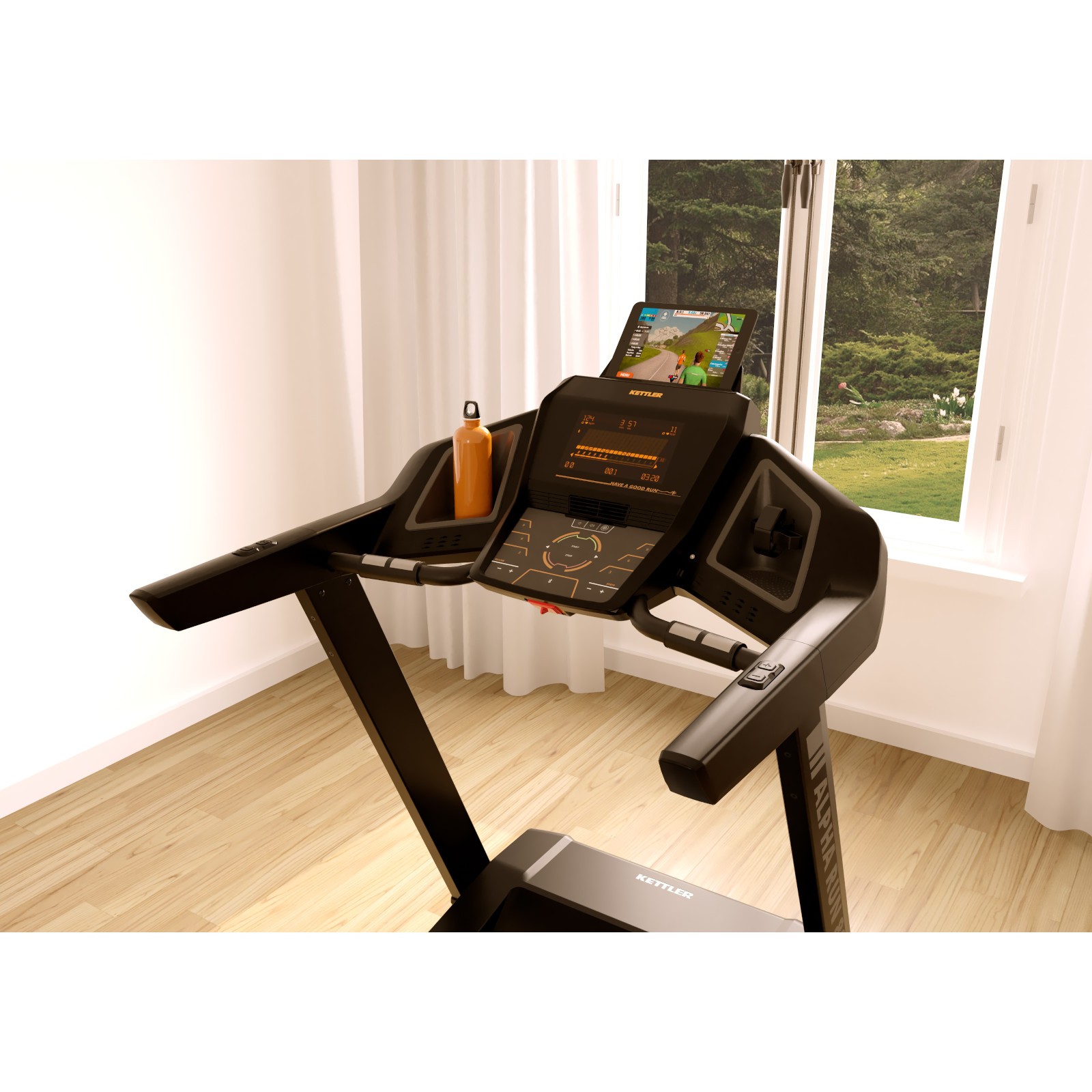 Über die Verbindung zu Apps wie KETTMaps, zu anderen Fitness-Apps oder Ihrer Sportuhr können Sie Ihr Training interaktiv gestalten und Ihre Laufeinheiten auf dem Laufband und in der freien Natur einfach und komfortabel zusammenführen. Eine entsprechende Halterung für Tablet, Smartphone und Ihre Sportuhr ist direkt am Laufband verbaut.