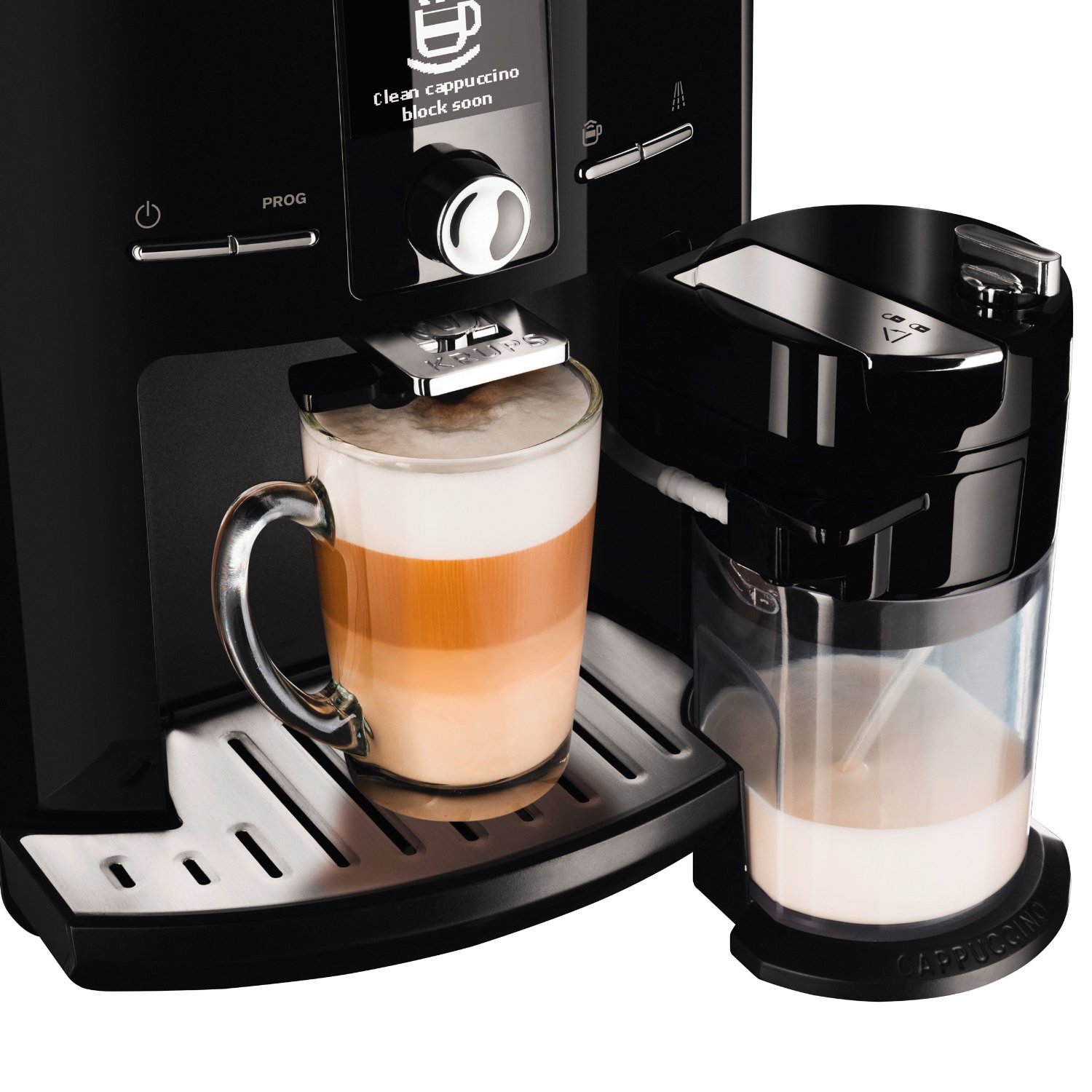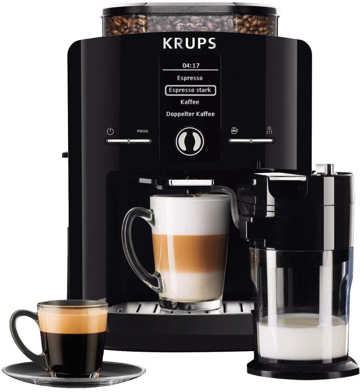 Milchsystem Krups Milchschaum-Technologie (Barista Quality Milk), abnehmbarer Milchbehälter (Fassungsvermögen: 600 ml), automatisches Reinigungsprogramm für das Milchsystem