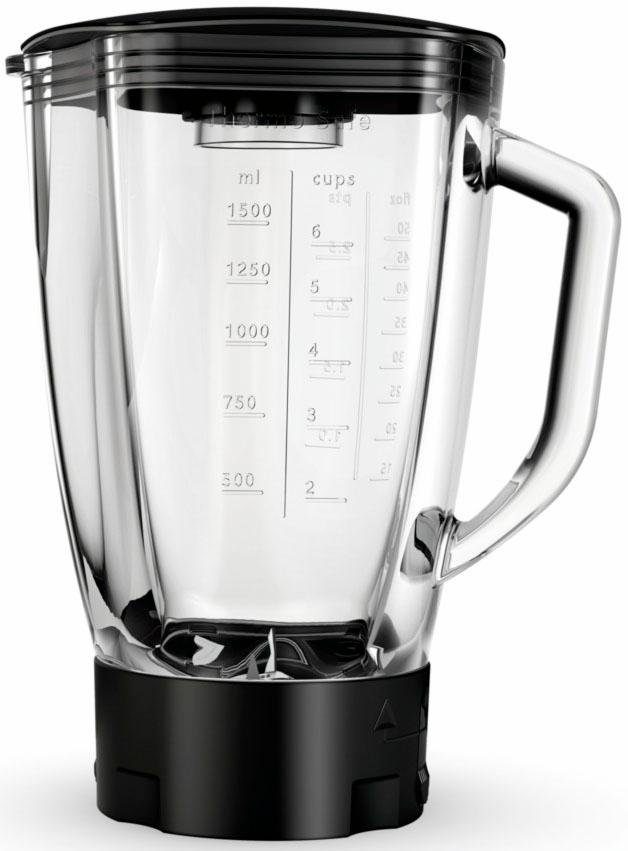 | Mitgelieferte Aufsätze | 1x Durchlaufschnitzler 1x Mixbehälter (Glas) 1x Spritzschutzdeckel mit Öffnung (Kunststoff) |