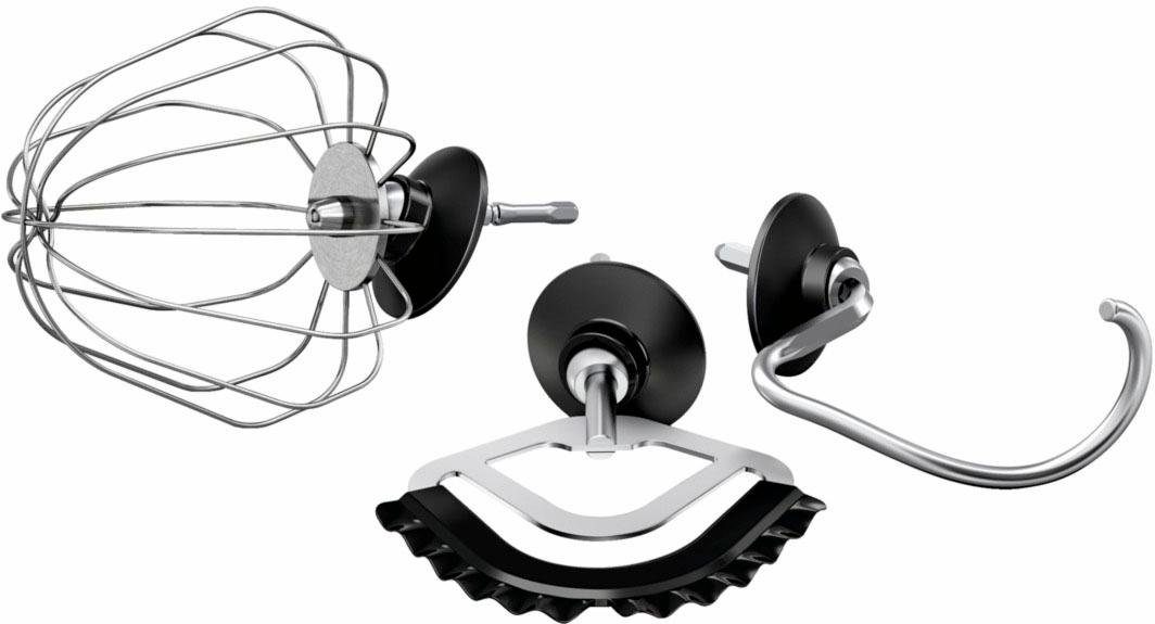 | Weitere Vorteile | 3D PlanetaryMixing: sehr gründliche Vermengung aller Zutaten dank planetarischem Rührgetriebe mit einzigartiger Rührbewegung in drei Richtungen gleichzeitig. Gerät erkennt angeschlossenes Zubehör und passt die Geschwindigkeit perfekt an. Hohe Sicherheit durch die Abdeckung der Antriebe aus gebürstetem Edelstahl Jeder Antrieb und auch das passende Zubehör haben die gleiche Farbmarkierung. Langlebigkeit durch Vollmetall-Gehäuse, Ausbaufähig mit individuellem Sonderzubehör (nicht im Lieferumfang enthalten) Mit höhenverstellbaren Vollmetall-Schlagbesen Teige, Smoothies gelingen so auf den Punkt genau: Mit dem integrierten Timer die Rührzeit einfach individuell einstellen. ThermoSafe: 2.3 Liter. Mit Speisen 1.5 Liter. Mixen von heißen Suppen, kalte Getränke |