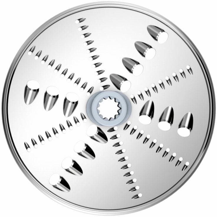 | Mitgelieferte Arbeitsscheiben | 1x Asia-Gemüse-Scheibe (Edelstahl) 1x Raspelwendescheibe, fein/grob (Edelstahl) 1x Reibescheibe, grob (Edelstahl) 1x Reibescheibe, mittel (Edelstahl) 1x Schneidwendescheibe, grob/fein (Edelstahl) |