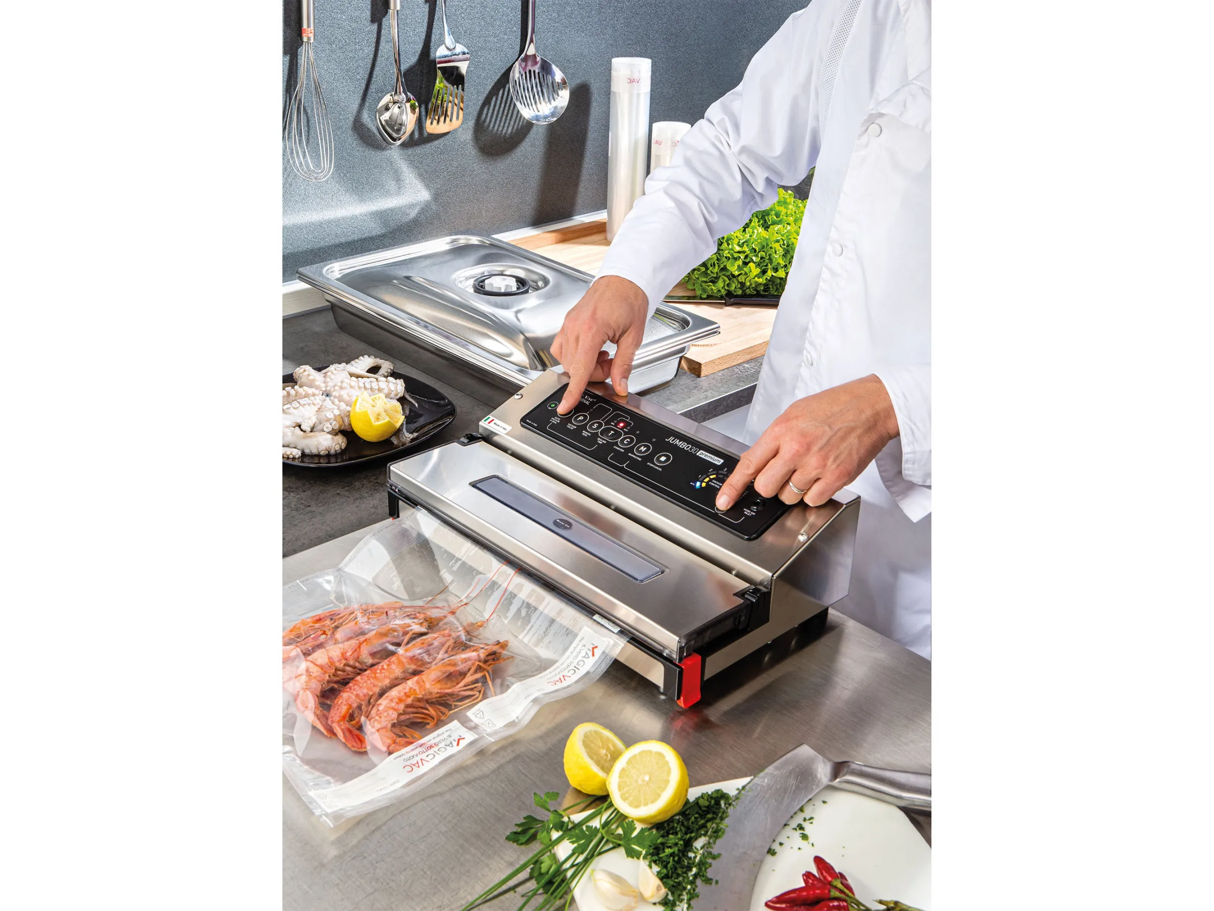 Dank ihrer Vielseitigkeit unterstützt die Magic Vac Vakuumiergerät Jumbo 30 Premium unterschiedlichste Koch- und Lagerkonzepte. (5)