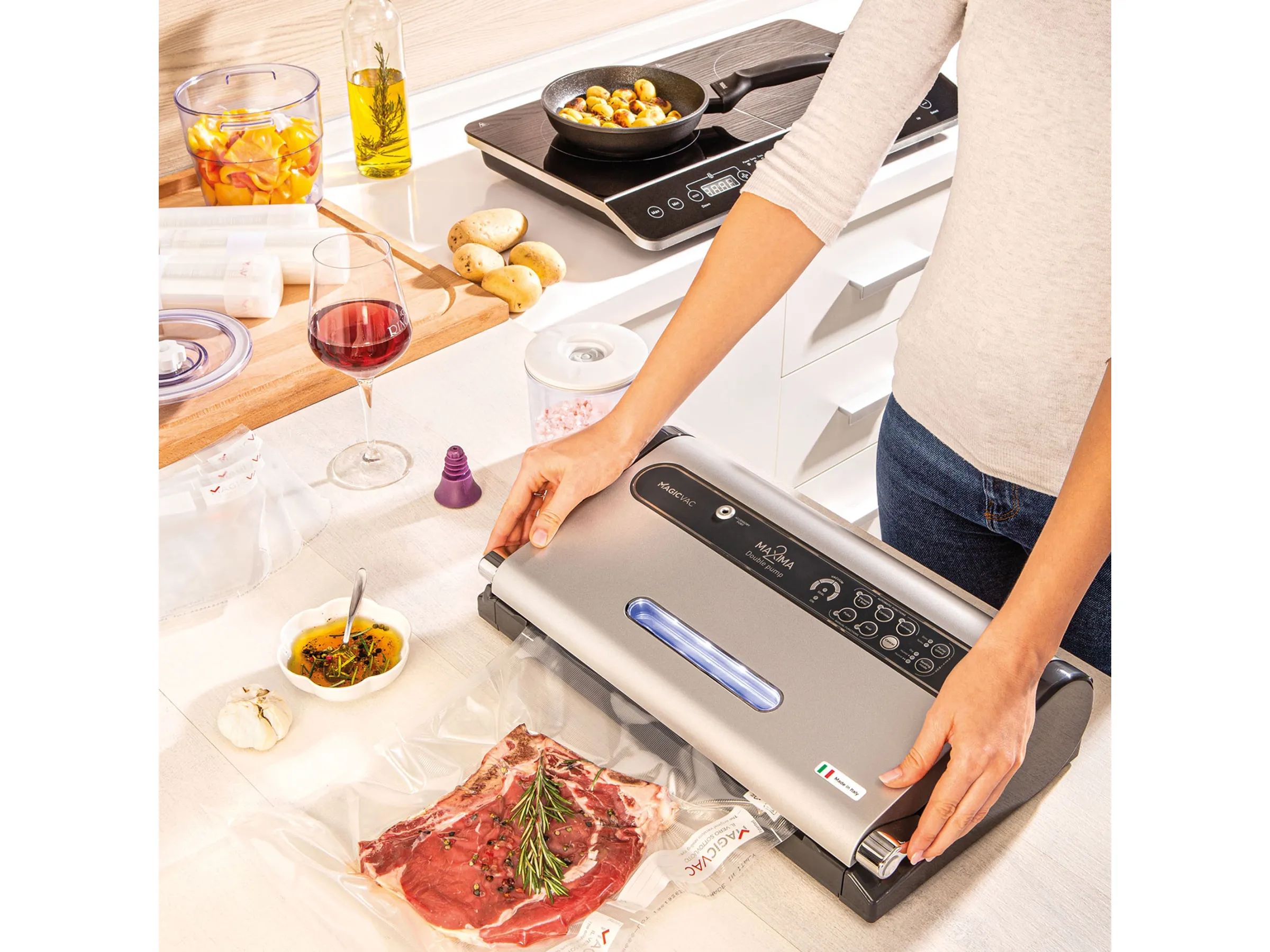 Für Fans des Sous-vide-Garens ist ein leistungsstarkes Vakuumiergerät unverzichtbar. Das Magic Vac Vakuumiergerät Maxima 2 ermöglicht luftdichte Verpackungen, die für diese Garmethode erforderlich sind.