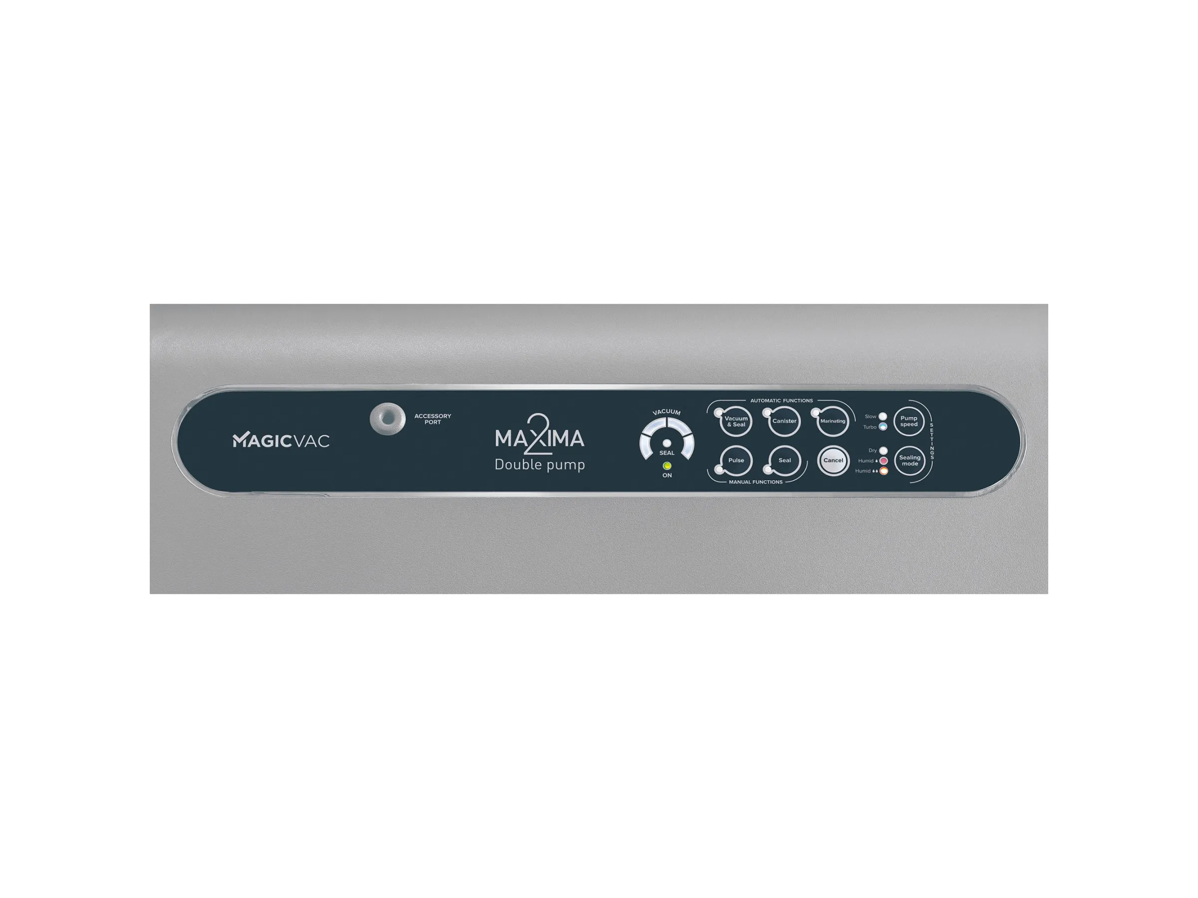 Das Magic Vac Vakuumiergerät Maxima 2 bietet zahlreiche zusätzliche Funktionen, wie die ActiSeal 3D-Technologie zur automatischen Anpassung der Versiegelung und eine doppelte Absauggeschwindigkeit. Der spezifische Zyklus zur Erzeugung von Vakuum in Behältern und die integrierte Kabelaufbewahrung runden das Gesamtpaket ab.