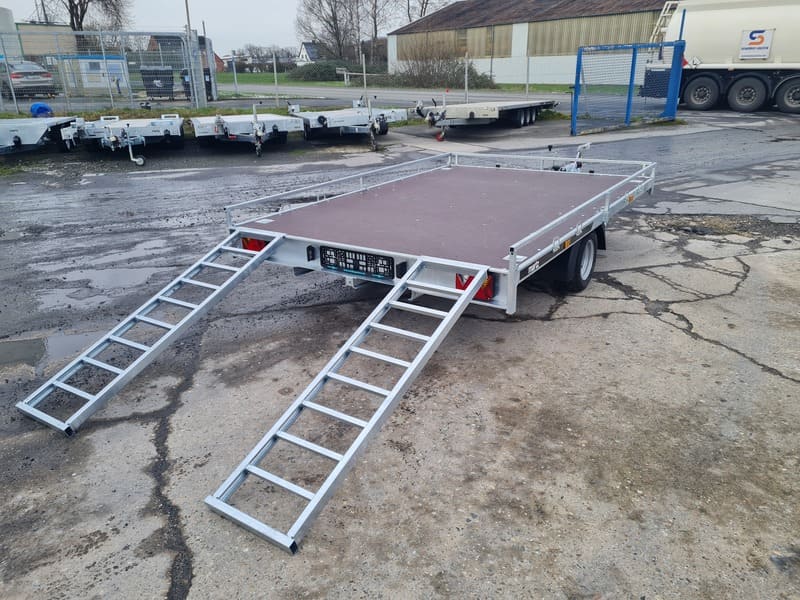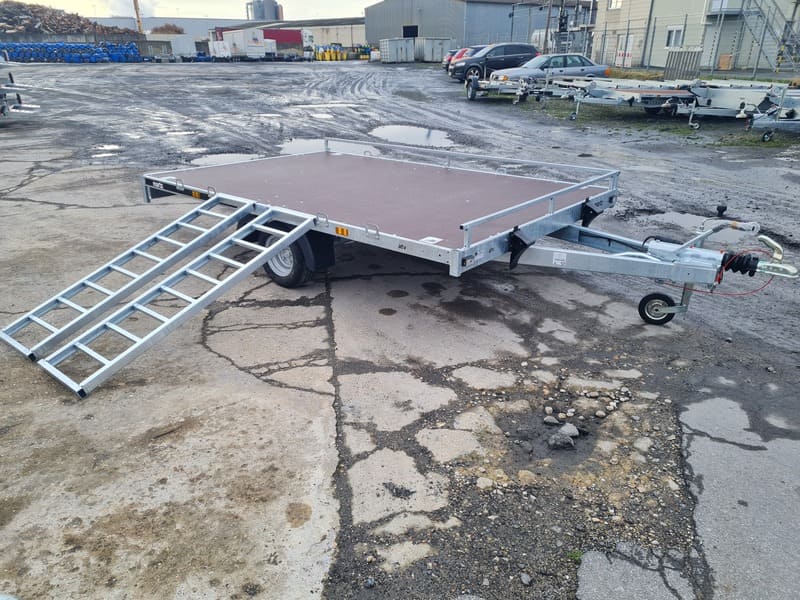Ausgestattet mit versenkbaren Rampen und integrierten Halterungen für Transportgurte, gewährleistet dieser Anhänger maximale Sicherheit und Flexibilität auf jeder Fahrt.