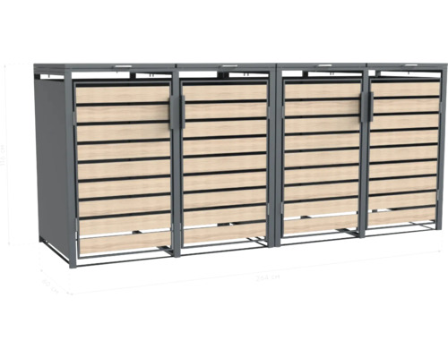 Mülltonnenbox WESTMANN Lacina 4 Metall inkl. Gasdruckfedern 264 x 80 x 116 cm anthrazit-Holzoptik