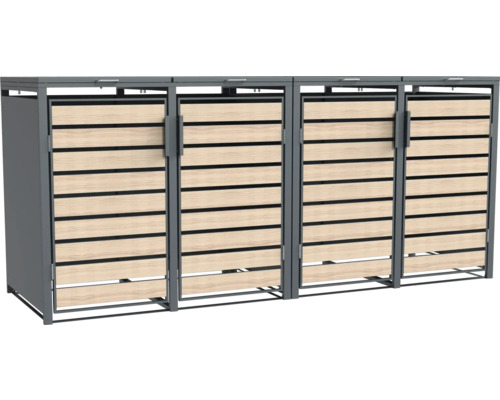 Westmann Metall Mülltonnenbox Lacina 4×240 L Anthrazit/Holzoptik | 80x264x116 cm