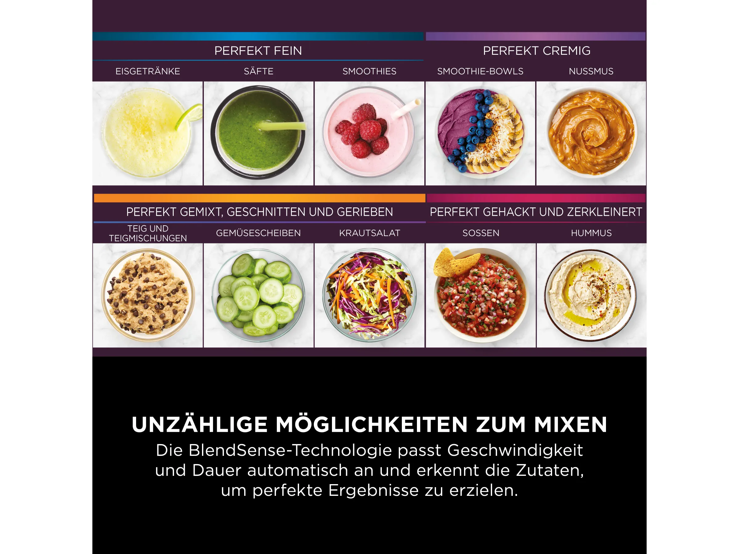 Ninjas fortschrittlichste Mixtechnologie nutzt intelligente Algorithmen, um frische oder gefrorene Zutaten, die Portionsgröße und mehr zu erkennen und die effizienteste Einstellung mit fortschrittlichen Tools auszuwählen: