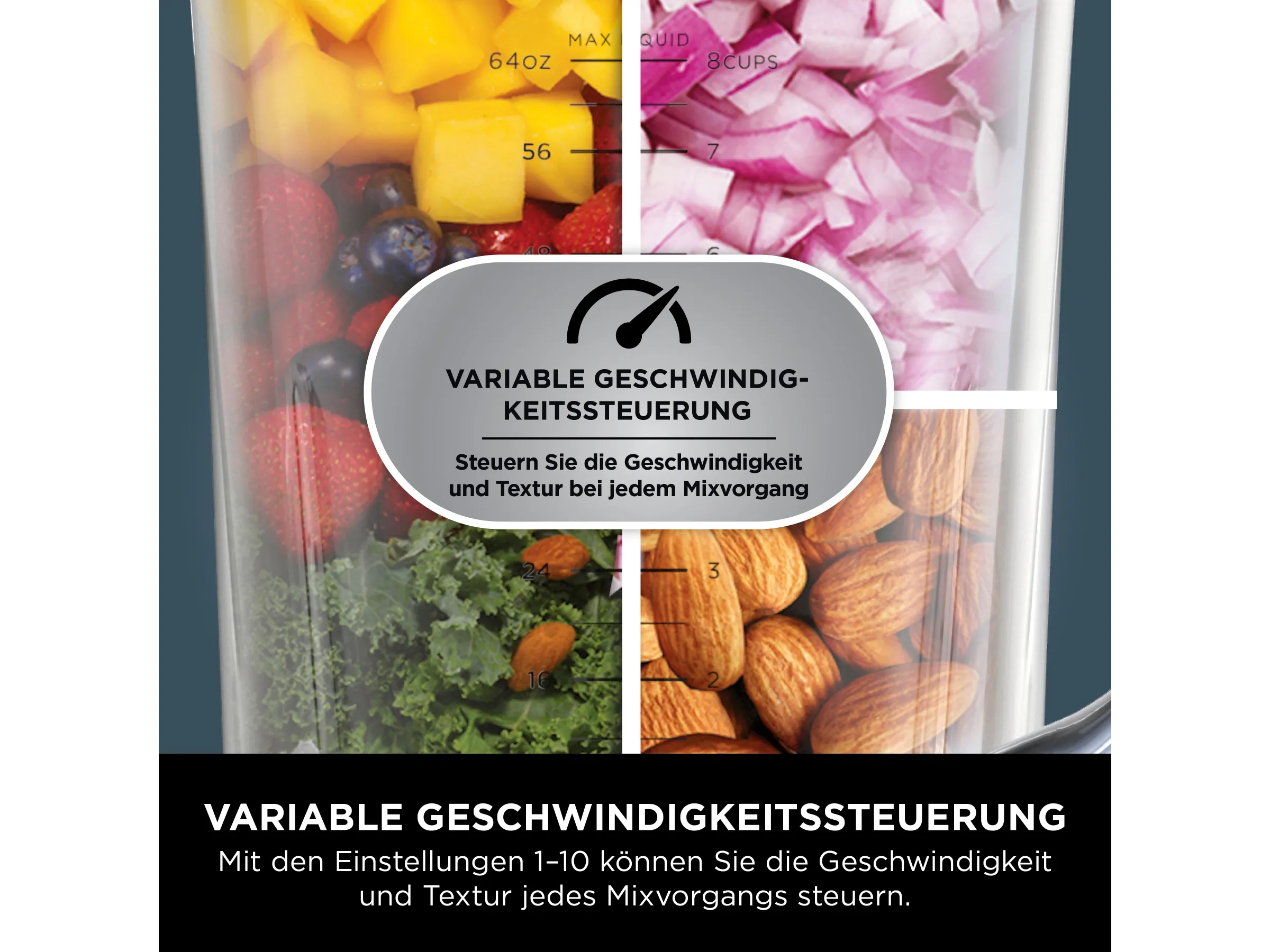 Dieses vielseitige Küchenwunderist ein Muss für ambitionierte Hobbyköche und vereint die Leistung und Funktionalität eines traditionellen Standmixers, eines persönlichen Smoothie Makers und einer Küchenmaschine in einem Gerät. Müheloses Hacken, Mixen, Zerkleinern und Schneiden auf Knopfdruck.