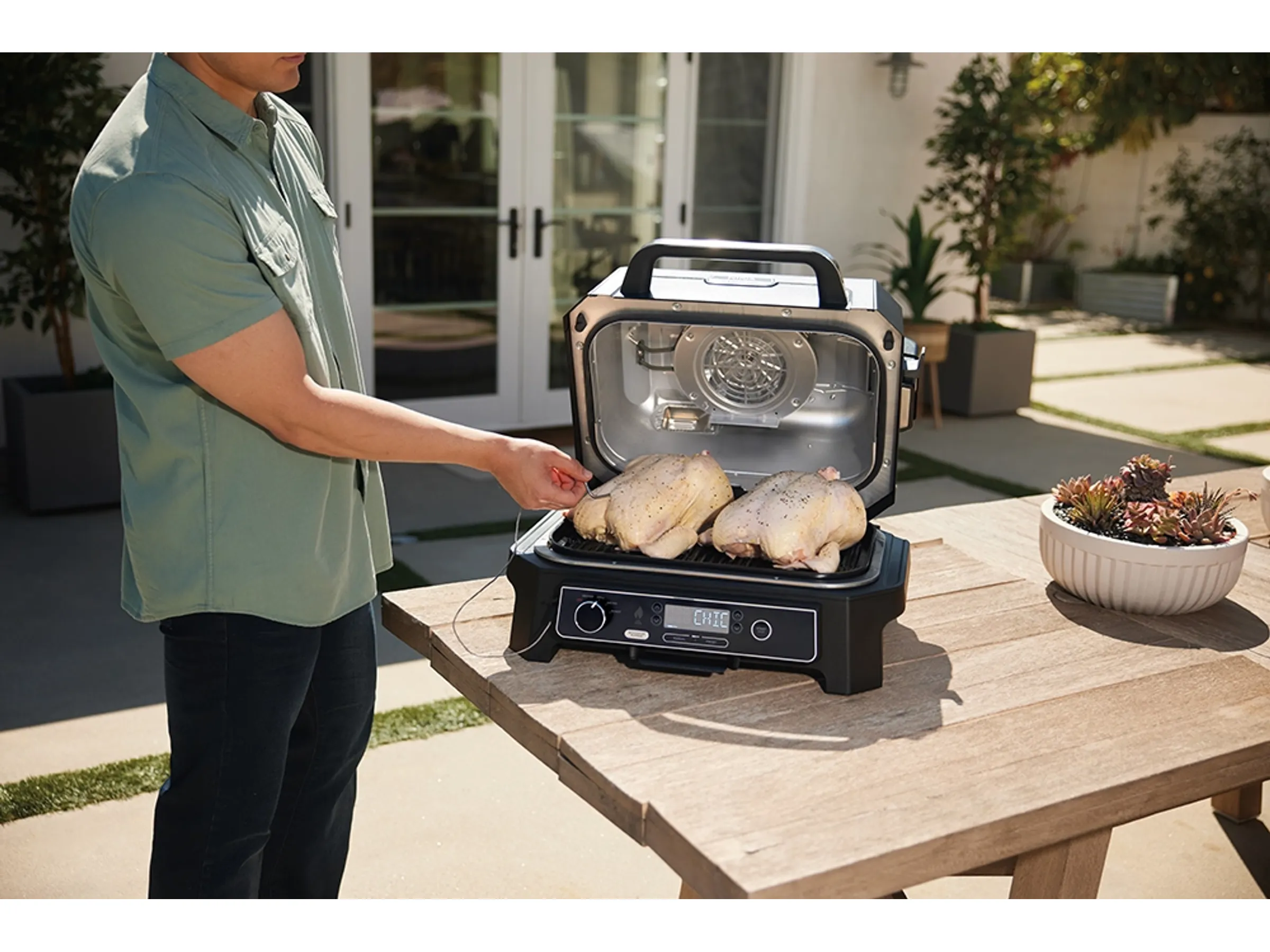 Der Ninja Elektrischer-Grill & Smoker Pro XL ist wetterfest und für den Außeneinsatz geeignet.