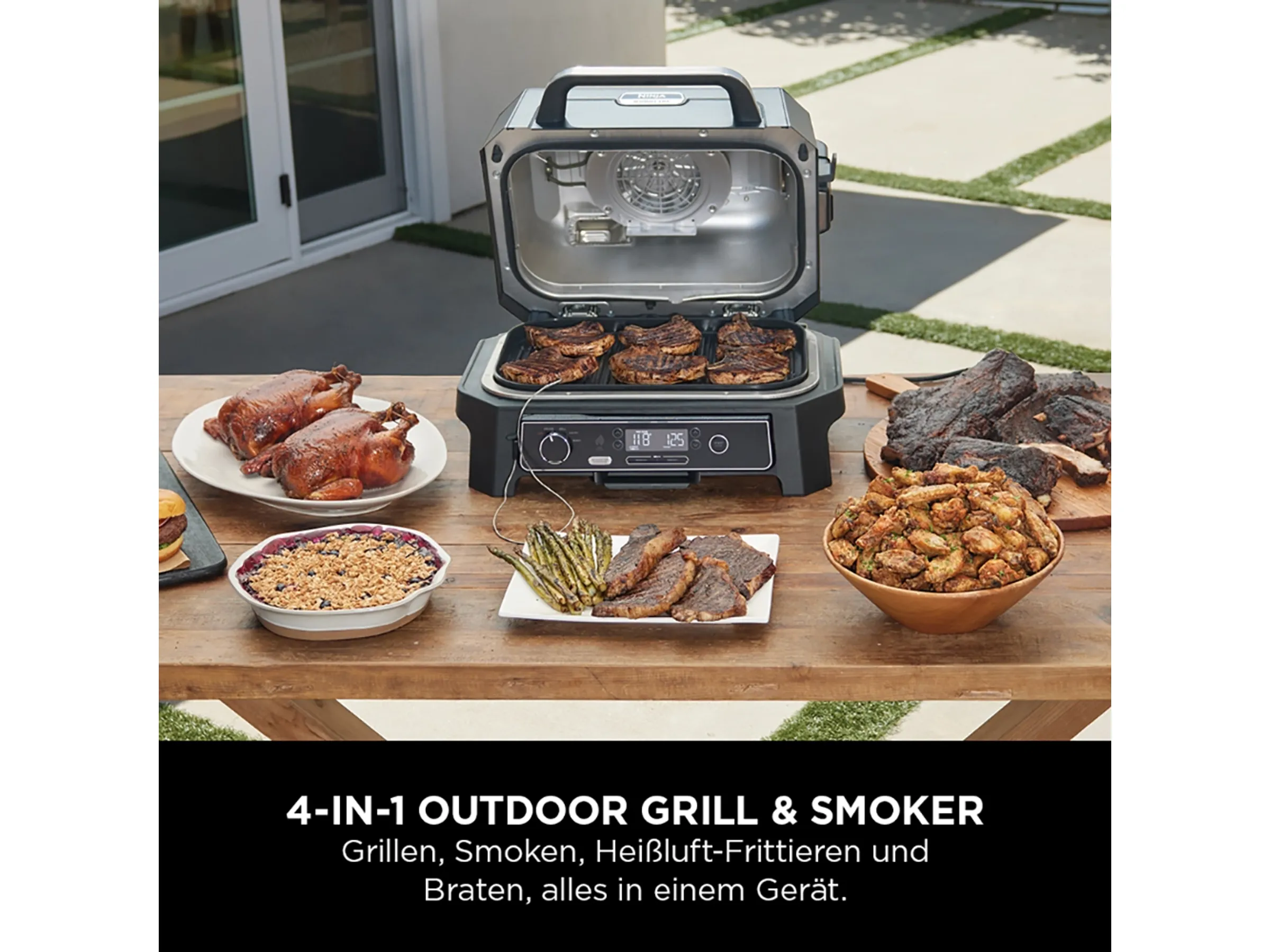 Großer elektrischer Outdoor-Grill, Smoker und Heißluftfritteuse