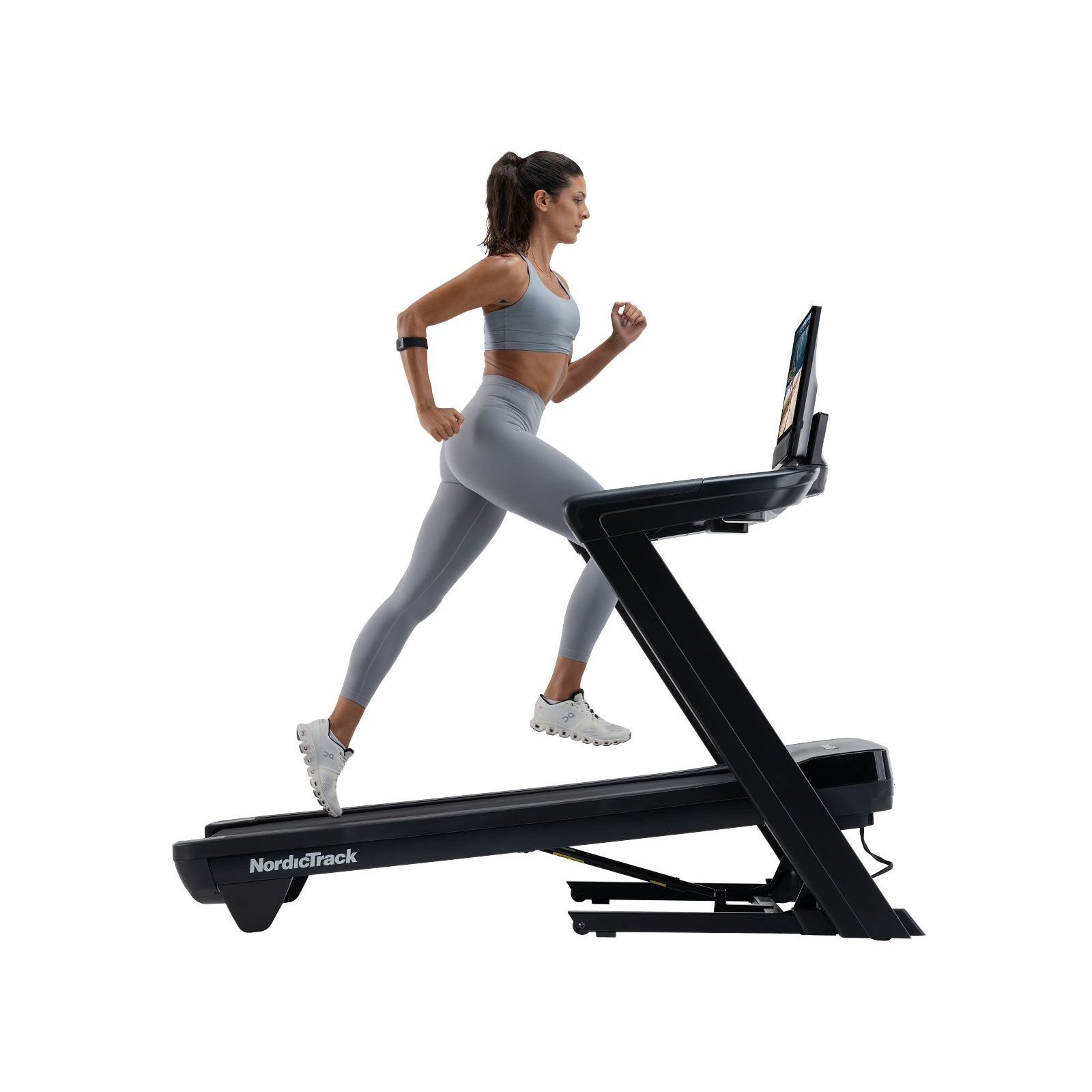- 24-Zoll-Touchscreen – dreh- und schwenkbar für Trainingseinheiten außerhalb des Laufbandes