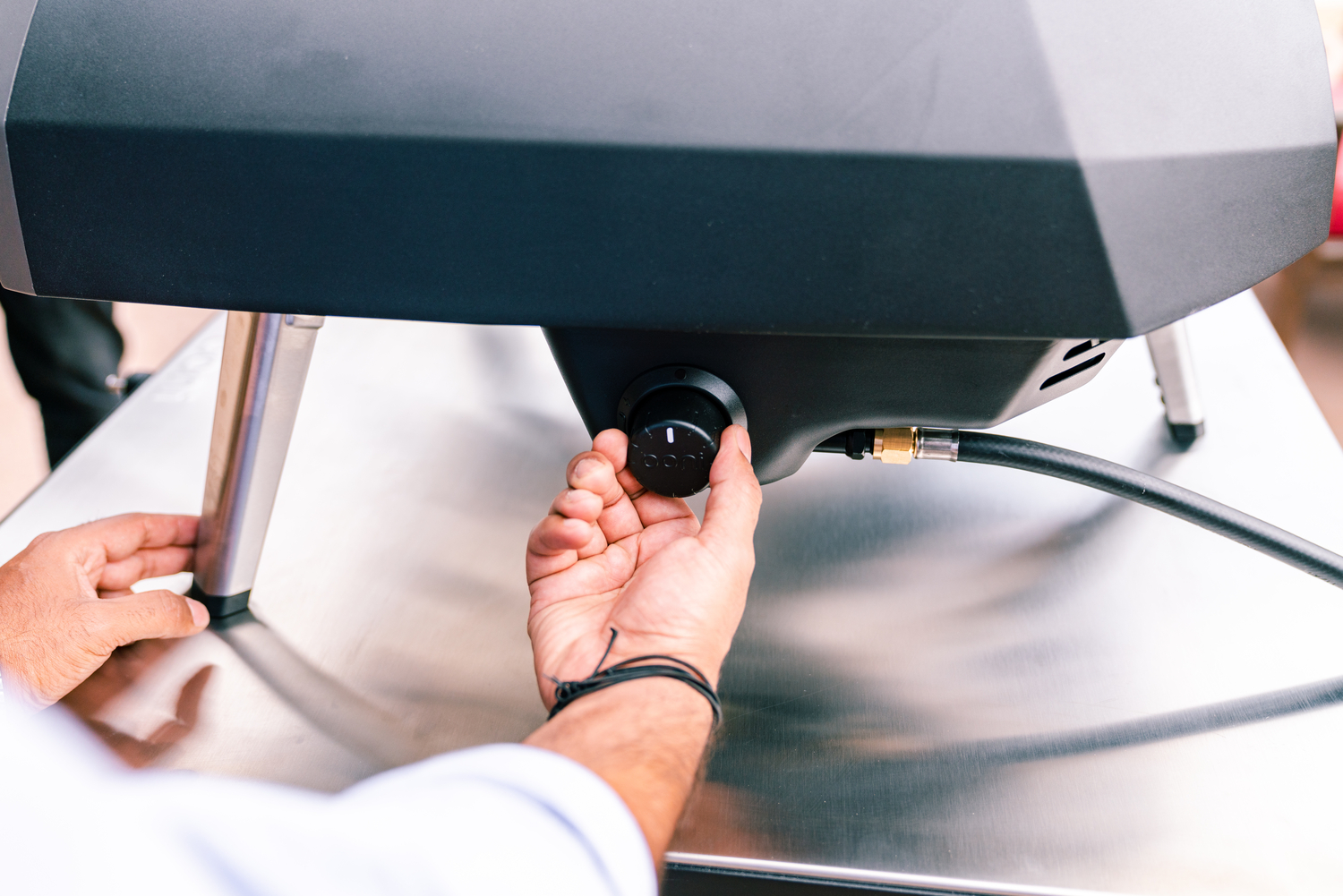 Der Gasbetrieb des Ooni Koda 16 macht die Handhabung besonders einfach. Die Zündung erfolgt per Knopfdruck, und die Hitze lässt sich direkt regulieren.