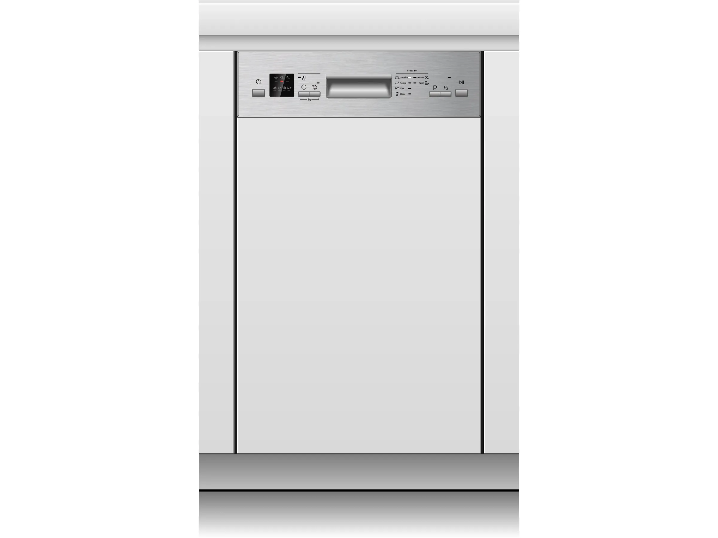 Dank der neutralen Bauweise lässt sich der Geschirrspüler mit unterschiedlichen Küchenfronten kombinieren. Ob moderne Hochglanzküche oder klassische Holzoptik – das Gerät passt sich optisch an.