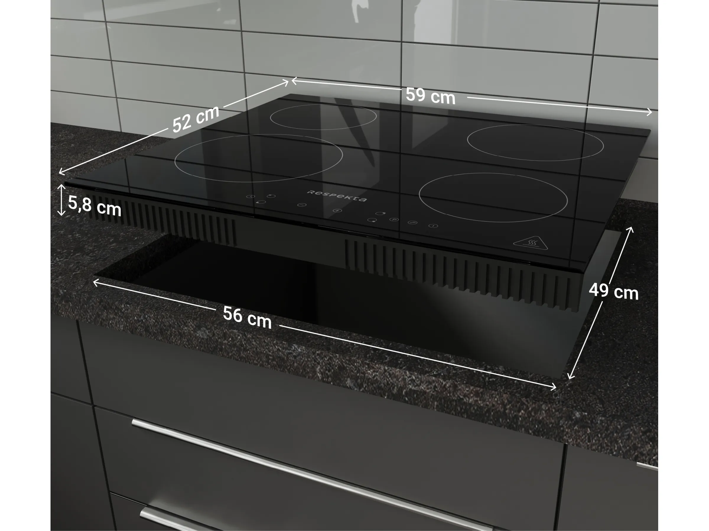 Ausschnittmaße Kochfeld (H x B x T) 56 x 49 cm
