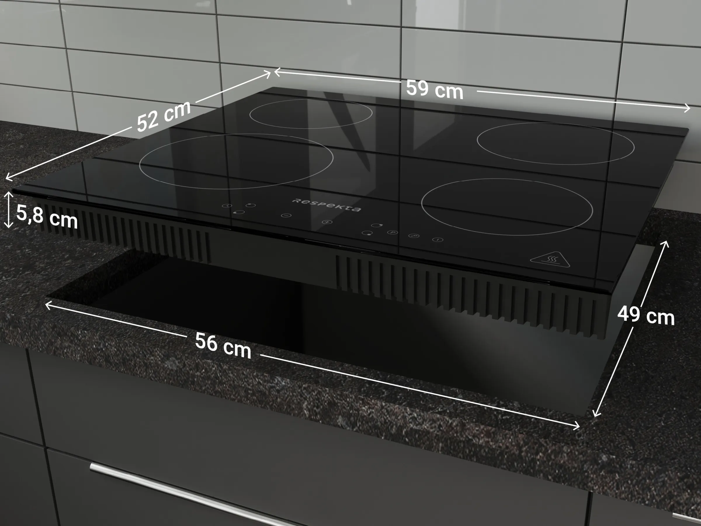 Ausschnittmaße Kochfeld (H x B x T) 56 x 49 cm